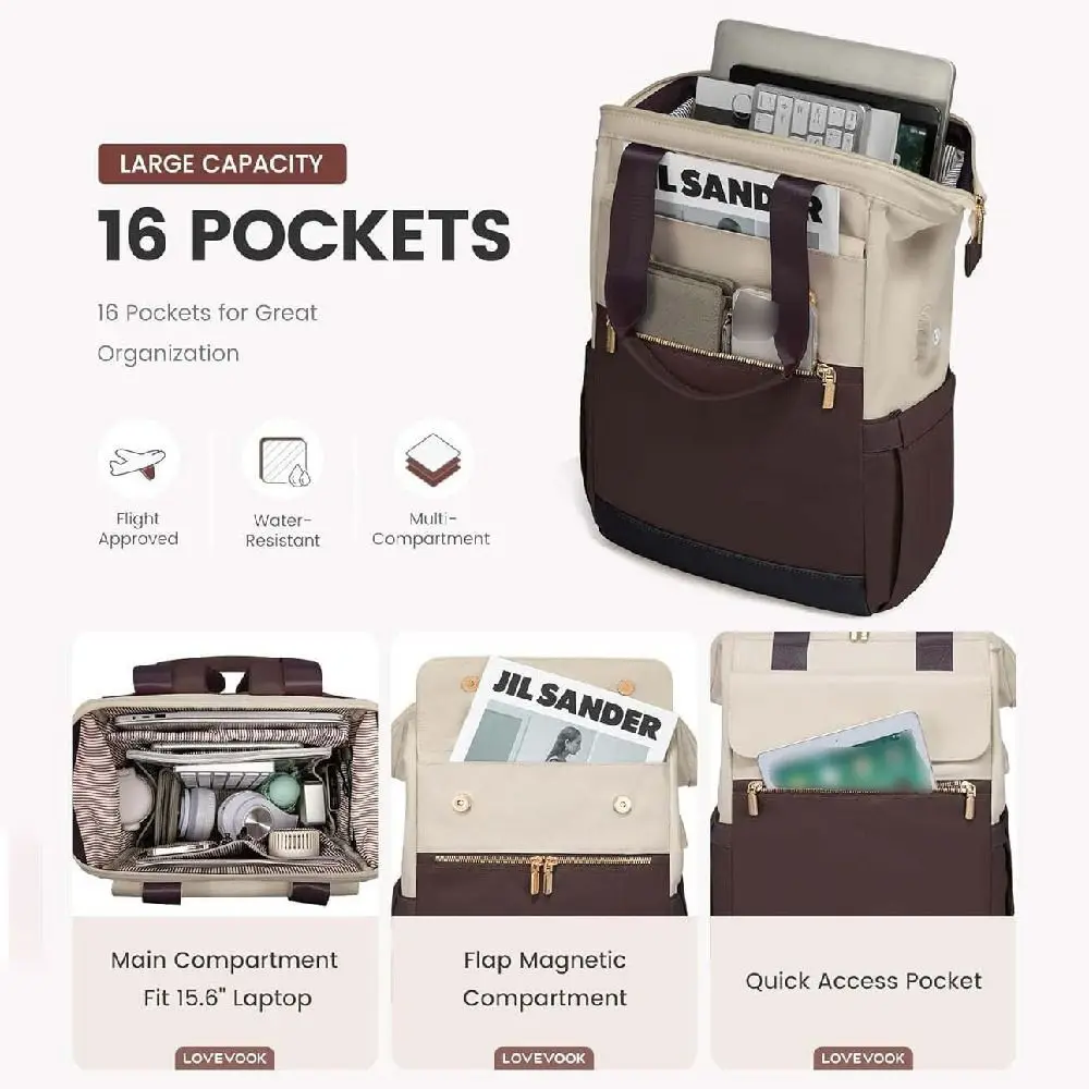 3.Spacious and Organized: With A large capacity and 16 pockets, this multifunctional backpack provides ample space to organize all your essentials, including A dedicated compartment that fits up to A 15.6inch laptop.