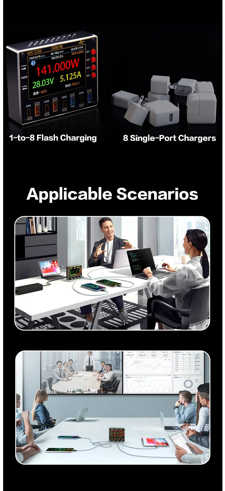 초고전력 출력: 최대 총 출력은 520W입니다.완전한 개인 프로토콜 호환성을 갖춘 8포트 동시 충전을 지원합니다.