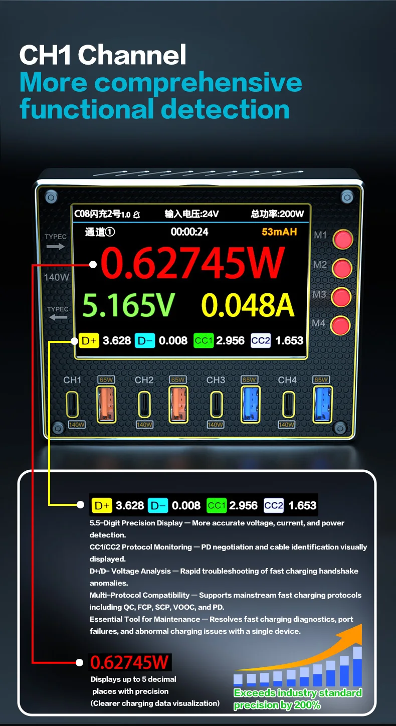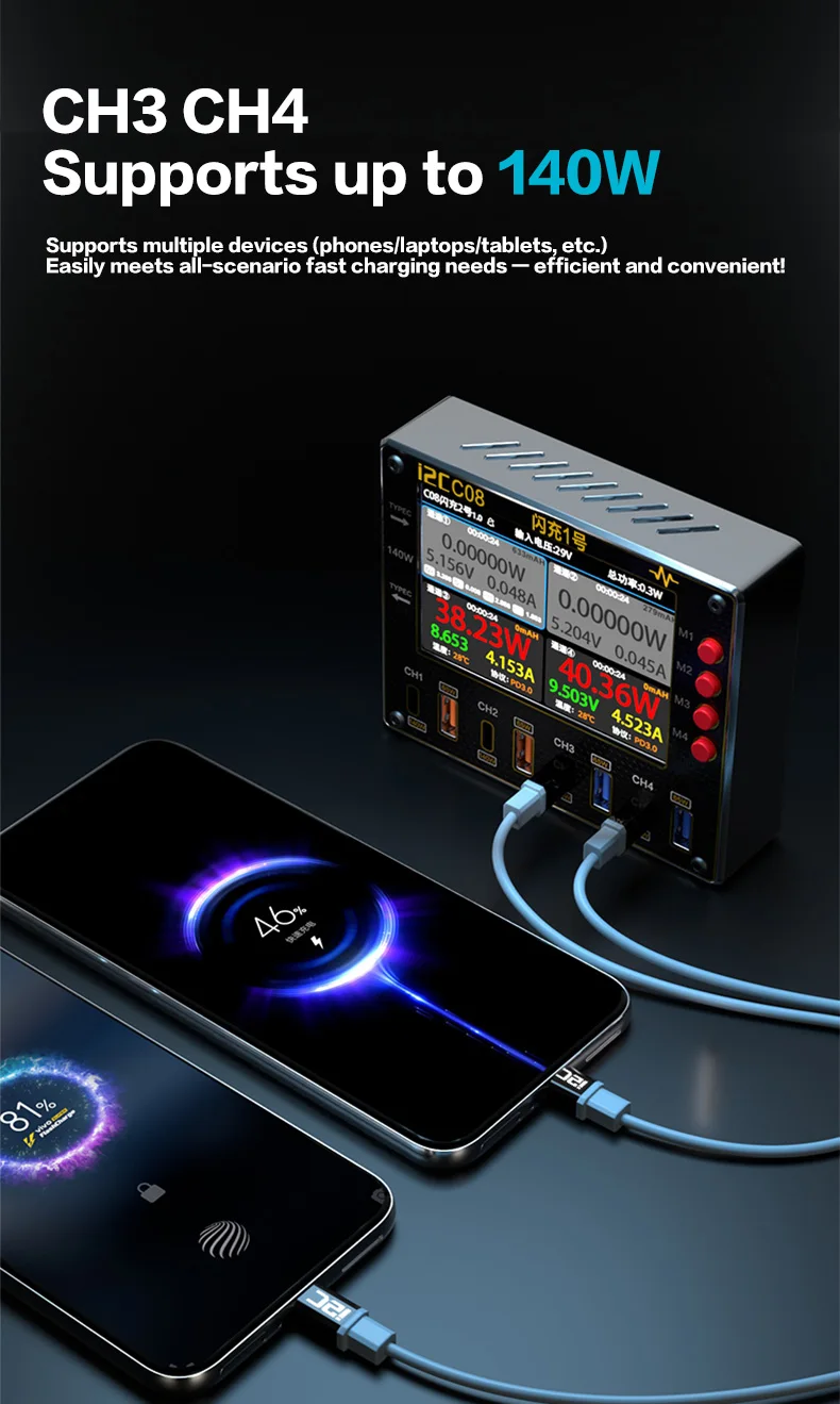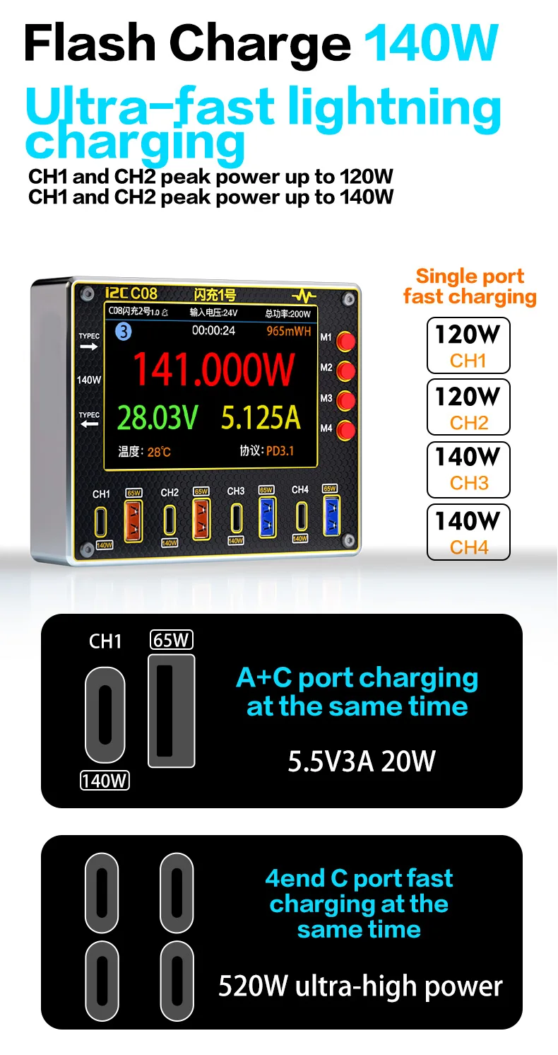 광범위한 프로토콜 호환성: PD3.0/PD3.1(최대 140W), QC2.0/QC3.0/QC4+/QC5, Huawei SCP/FCP, 삼성기기 호환 호환 호환 AFC, VIVO VFCP, 샤오미 호환 호환 호환 호환 120W 등을 지원합니다.