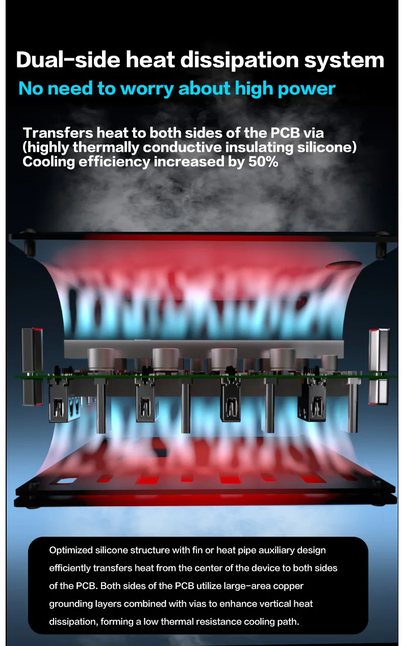 고급 냉각 시스템: 열전도율이 높은 절연 실리콘을 사용한 양면 방열.냉각 효율이 50% 증가했습니다.