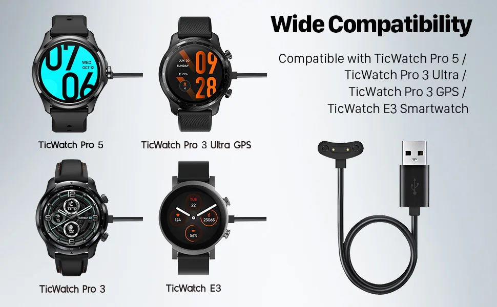 이 액세서리는 TicWatch Pro 5, TicWatch Pro 3 울트라 GPS, TicWatch Pro 3 울트라 LTE, TicWatch Pro 3 GPS, TicWatch Pro 3 LTE 및 TicWatch E3 에만 사용할 수 있습니다.