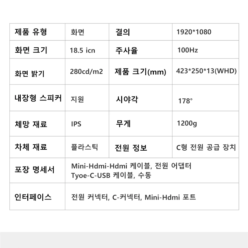 | 인터페이스 유형 | HDMI 호환 |
