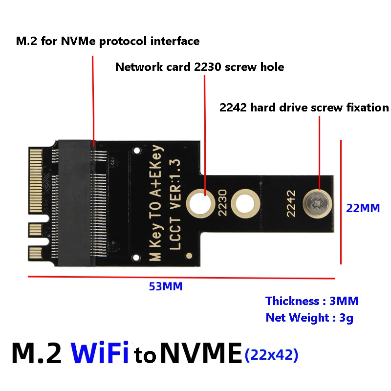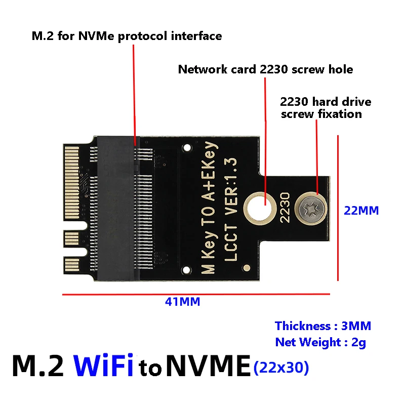 1.M.2 슬롯에는 다양한 유형이 있습니다.그들은 똑같아 보입니다.주문하기 전에 먼저 마더보드에 M.2 KEY - A 또는 E 슬롯이 있는지 확인하십시오(일반적으로 무선 네트워크 카드의 경우 CNIV 카드는 사용할 수 없음).이 제품은 M.2 KEY - A 또는 E 인터페이스 애플리케이션에만 적용 가능합니다.다른 인터페이스는 사용할 수 없습니다!