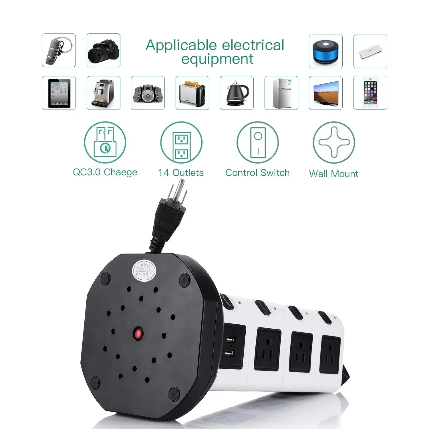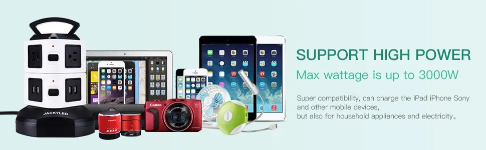 RoHS, CE 및 FCC 인증서.지역마다 전압이 다르기 때문에 이 제품은 110V250V를 지원하도록 설계되었습니다.125V 미만에서 사용하는 경우 최대 전력은 125V X 13A = 1625W입니다. 250V 미만인 경우 최대 전력은 3000W에 도달할 수 있습니다.이 멀티탭은 내화성 ABS 플라스틱 소재와 PVC, 구리 케이블로 제작되어 과부하 보호 스마트 제어 및 LED 표시기 디자인으로 충전 장치에 대한 높은 보안을 보장합니다.