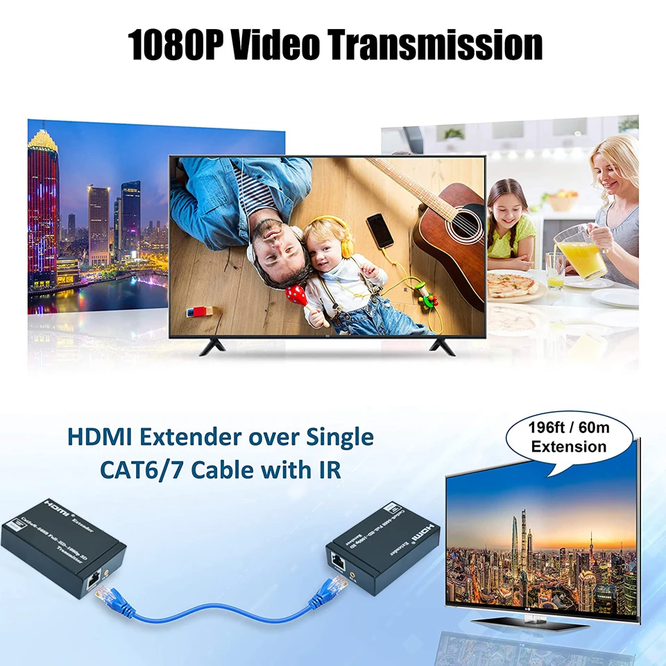 내장 ESD 보호 시스템:전송을 훨씬 안전하게 만드십시오. 대형 주택, 공장, 건설 현장, 데이터 제어 센터 등을위한 완벽한 hdmi 확장 어댑터;플러그 앤 플레이