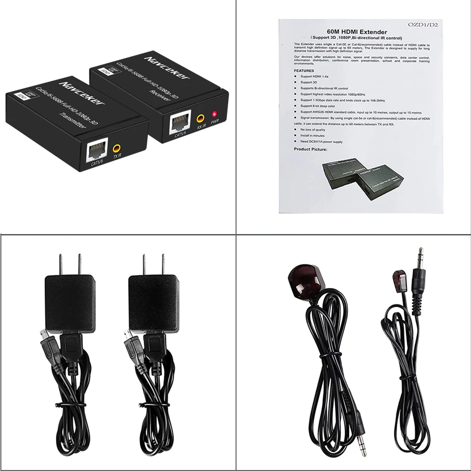 패키지: HDMI 익스텐더 송신기……………………………1 개 HDMI 익스텐더 수신기………………………………… 1 개 POWER LOGIC 어댑터…………………………………....2 개 IR 블래스터……………………………….... ...............................1 개 IR 수신기……………………………………….......... 1 개 |