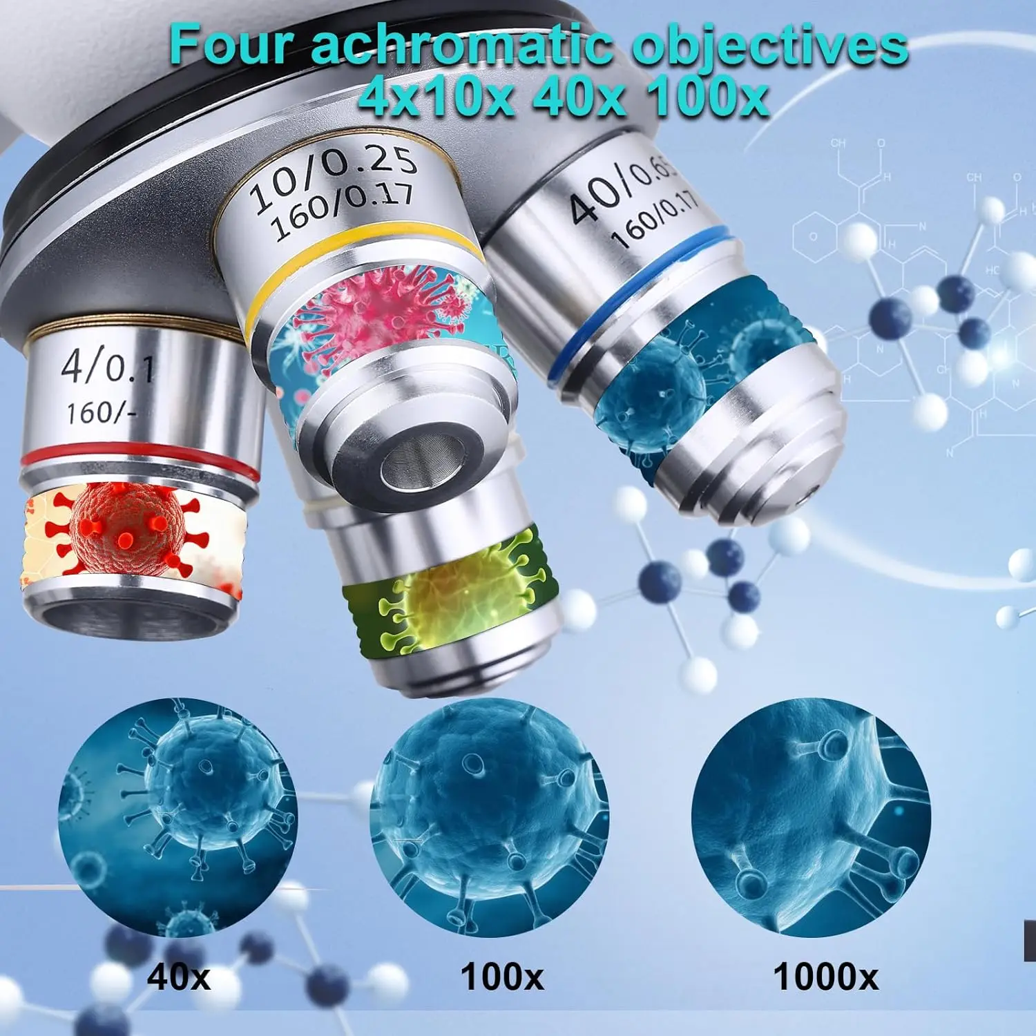 대물렌즈: 4X, 10X, 40X, 100X