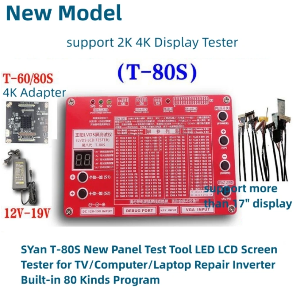 SYan T80S 세대 노트북 TV/LCD/LED 테스트 도구 키트 세트 LCD 패널 테스터 지원 7 -84 인치 LVDS 인터페이스 15/스크린 라인