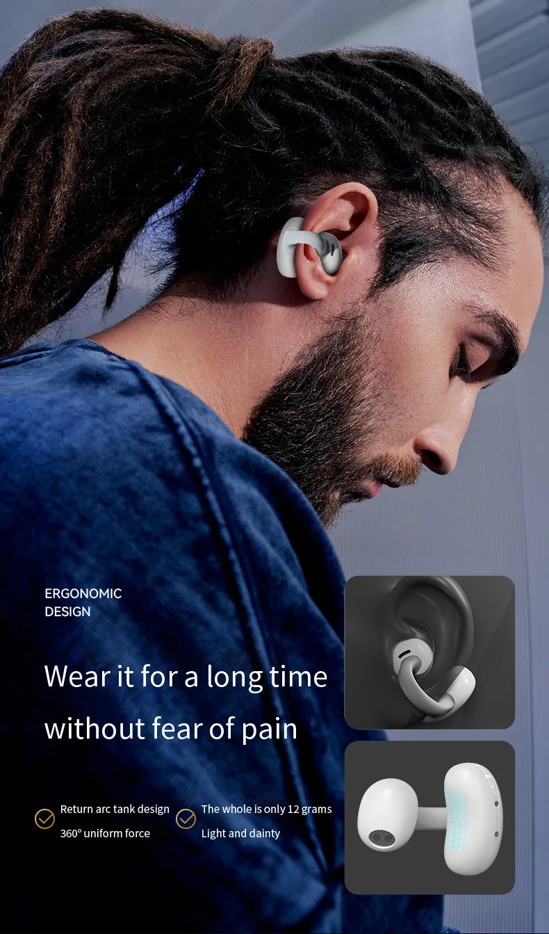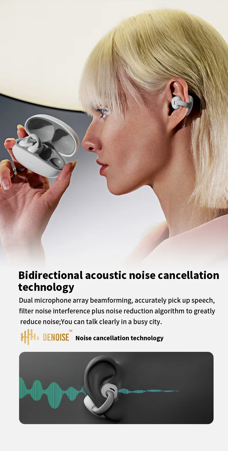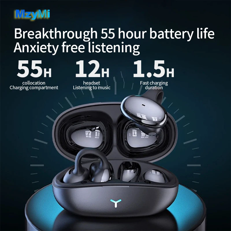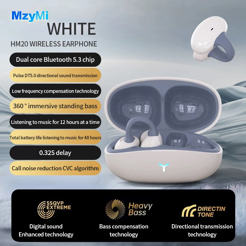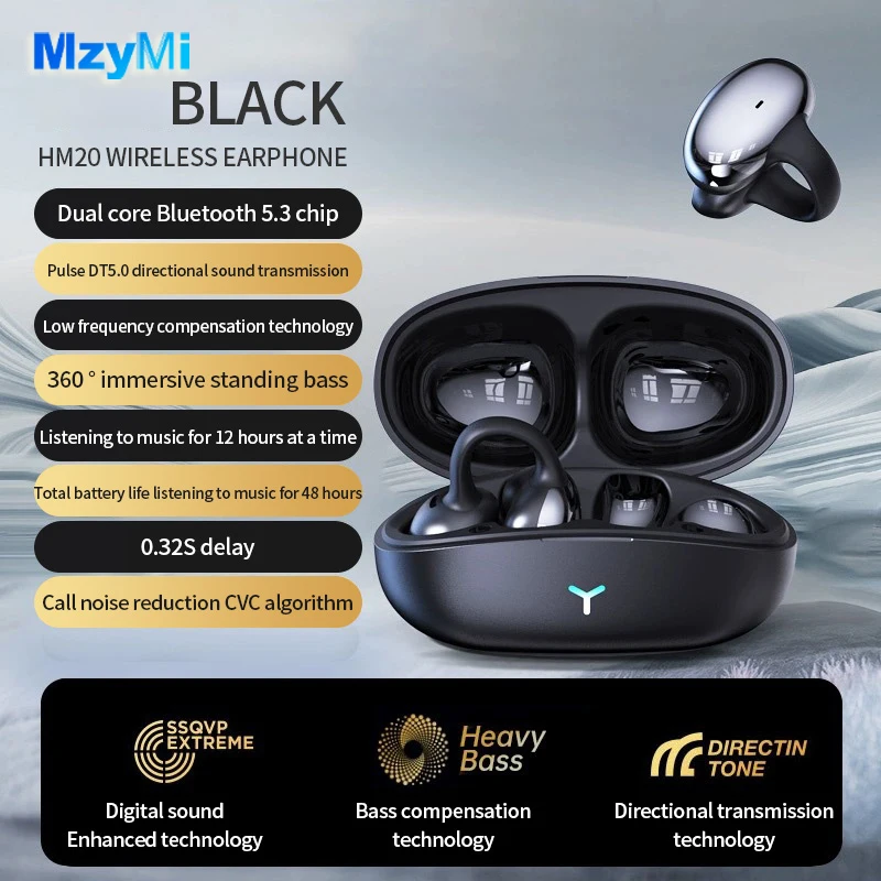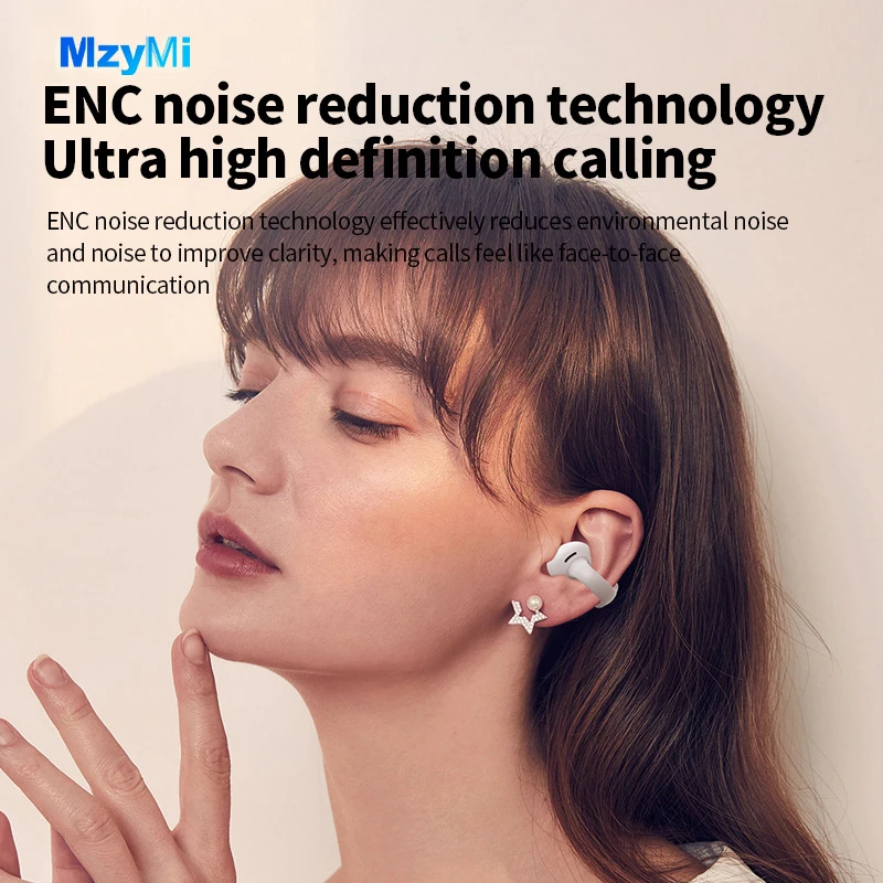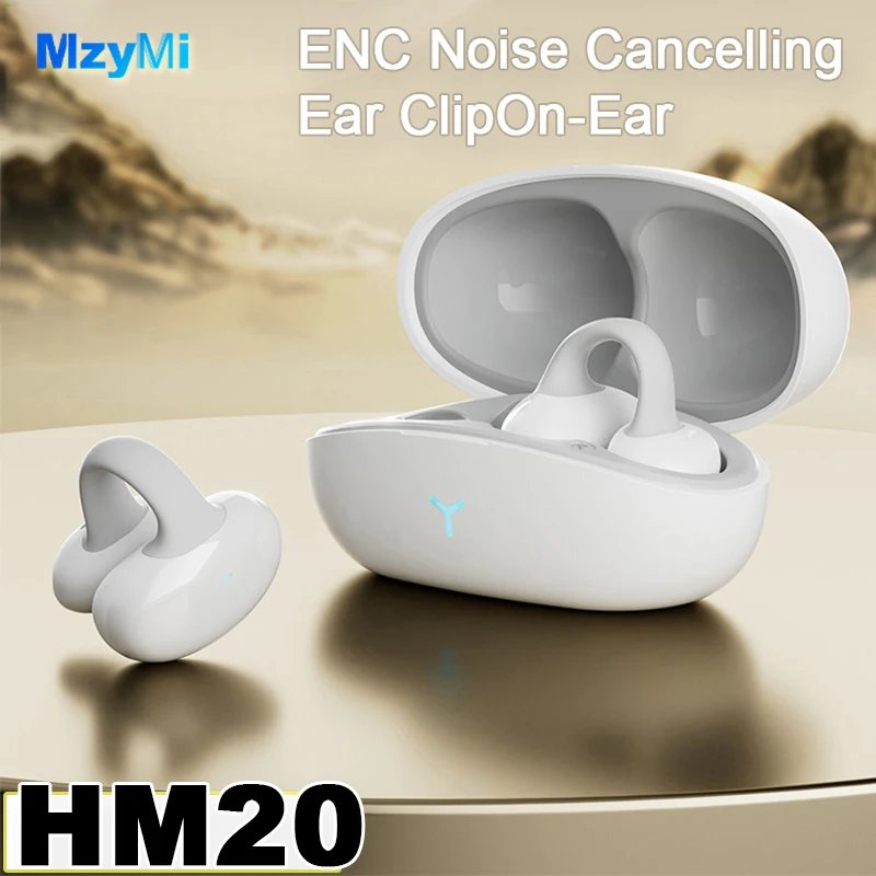 MZYMI HM20 귀 클립 헤드셋 ENC 오픈 이어 무선 Bluetooth5.3 헤드폰 안드로이드 iOS 용 마이크가있는 소음 차단 이어폰