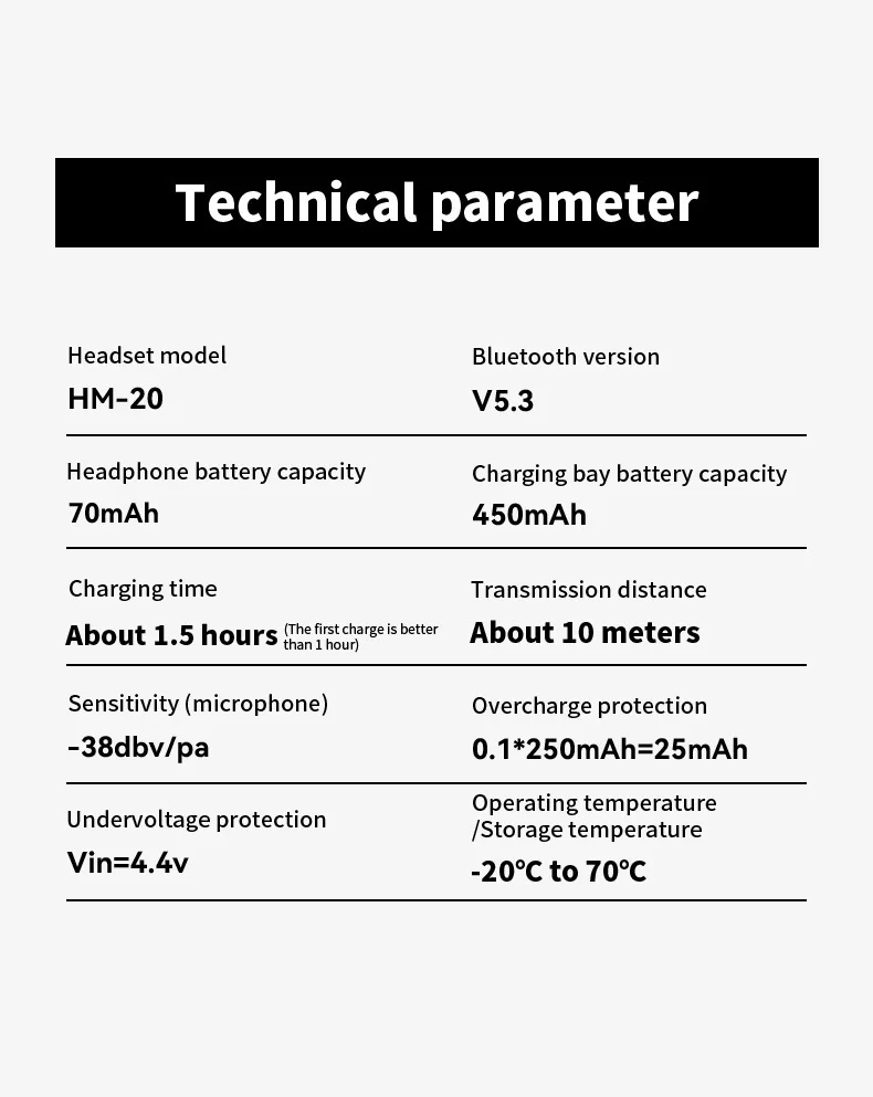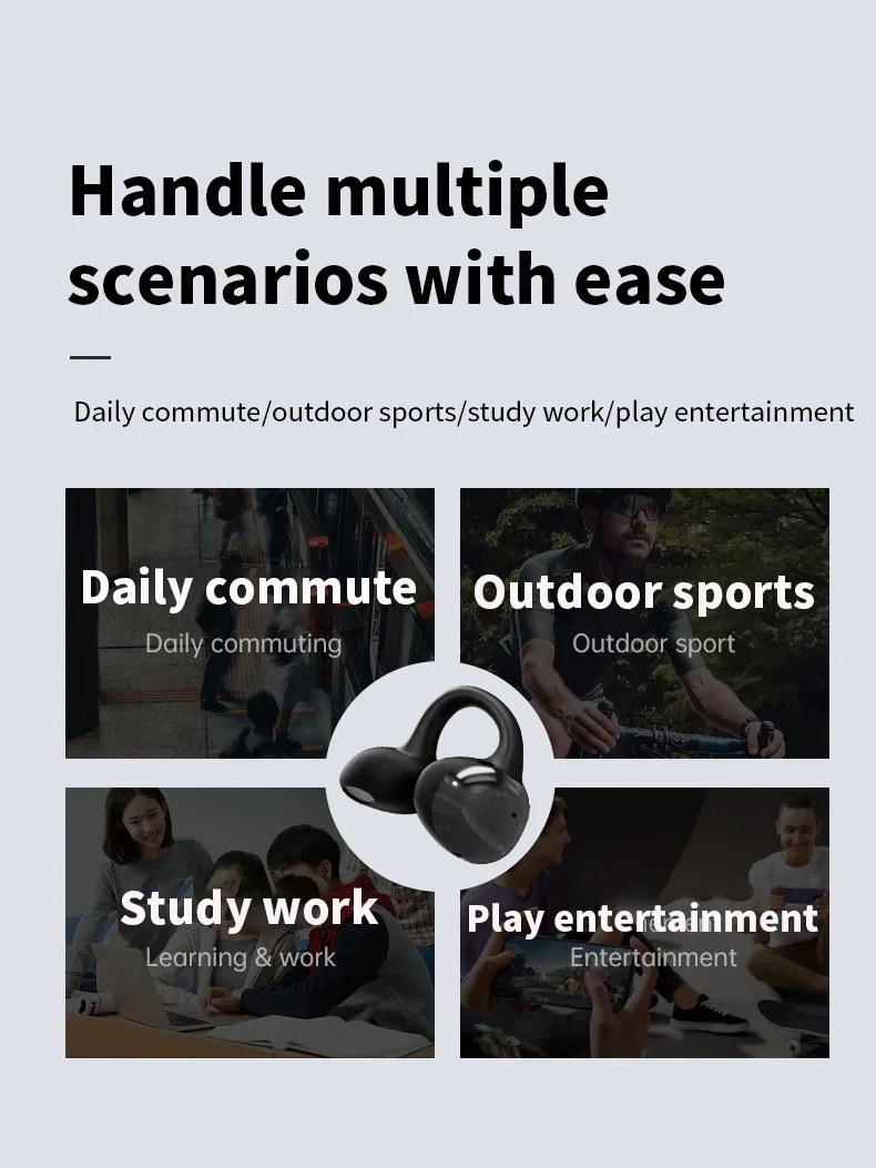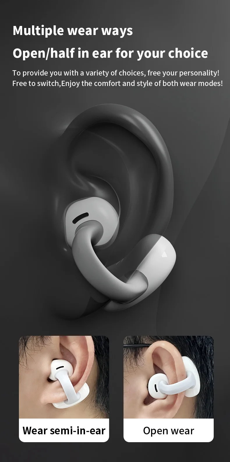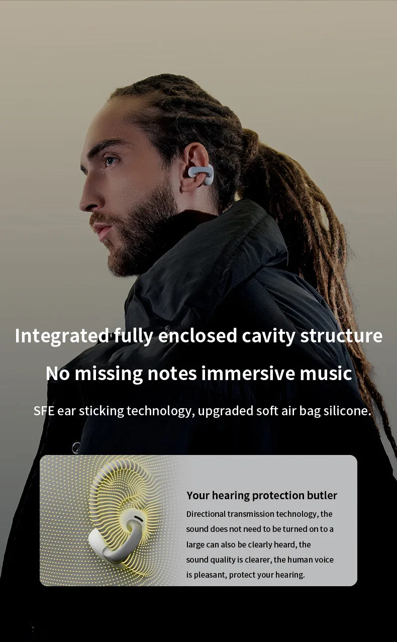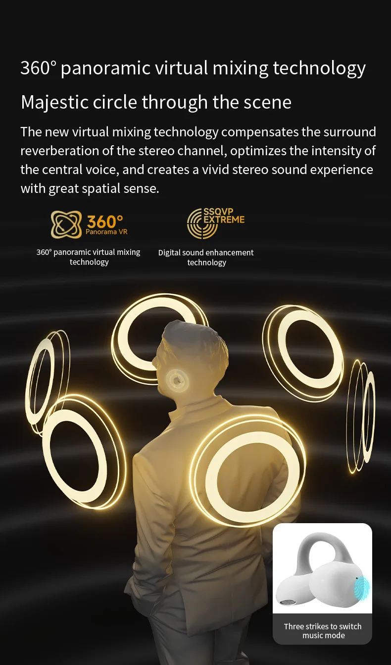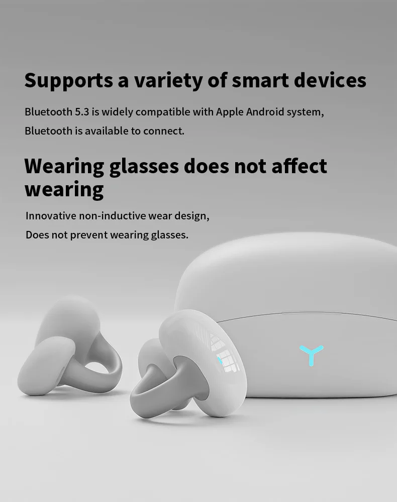 MZYMI HM20 귀 클립 헤드셋 ENC 오픈 이어 무선 Bluetooth5.3 헤드폰 안드로이드 iOS 용 마이크가있는 소음 차단 이어폰