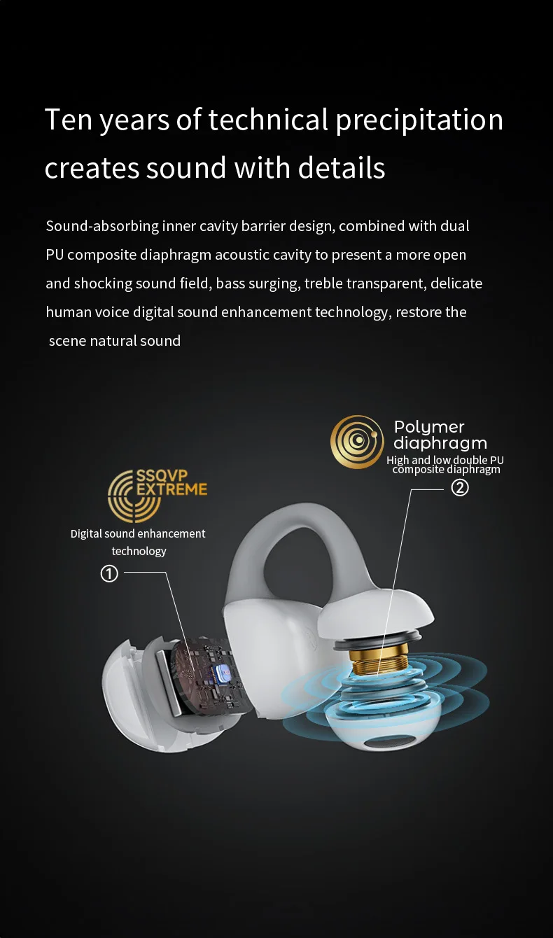 인이어 디자인을 적용한 블루투스 이어버드와 복합 다이어프램 무빙 코일 유닛은 자연스러운 청각으로 풍부하고 두꺼운 사운드를 만들어 오디오의 진정성과 사운드의 역동성을 복원합니다.현장에서 듣는 듯한 느낌을 주어 실감나는 사운드를 제공합니다.