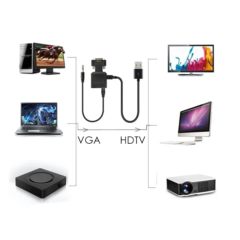 1.플러그 앤 플레이, 멀티 스크린 디스플레이를 설정할 필요가 없습니다!사용하기 쉽고 빠르며 VGAHDMI 호환 비디오 변환에 적합한 제품입니다. (제품을 반대로 사용할 수 없다는 점에 유의하세요.)