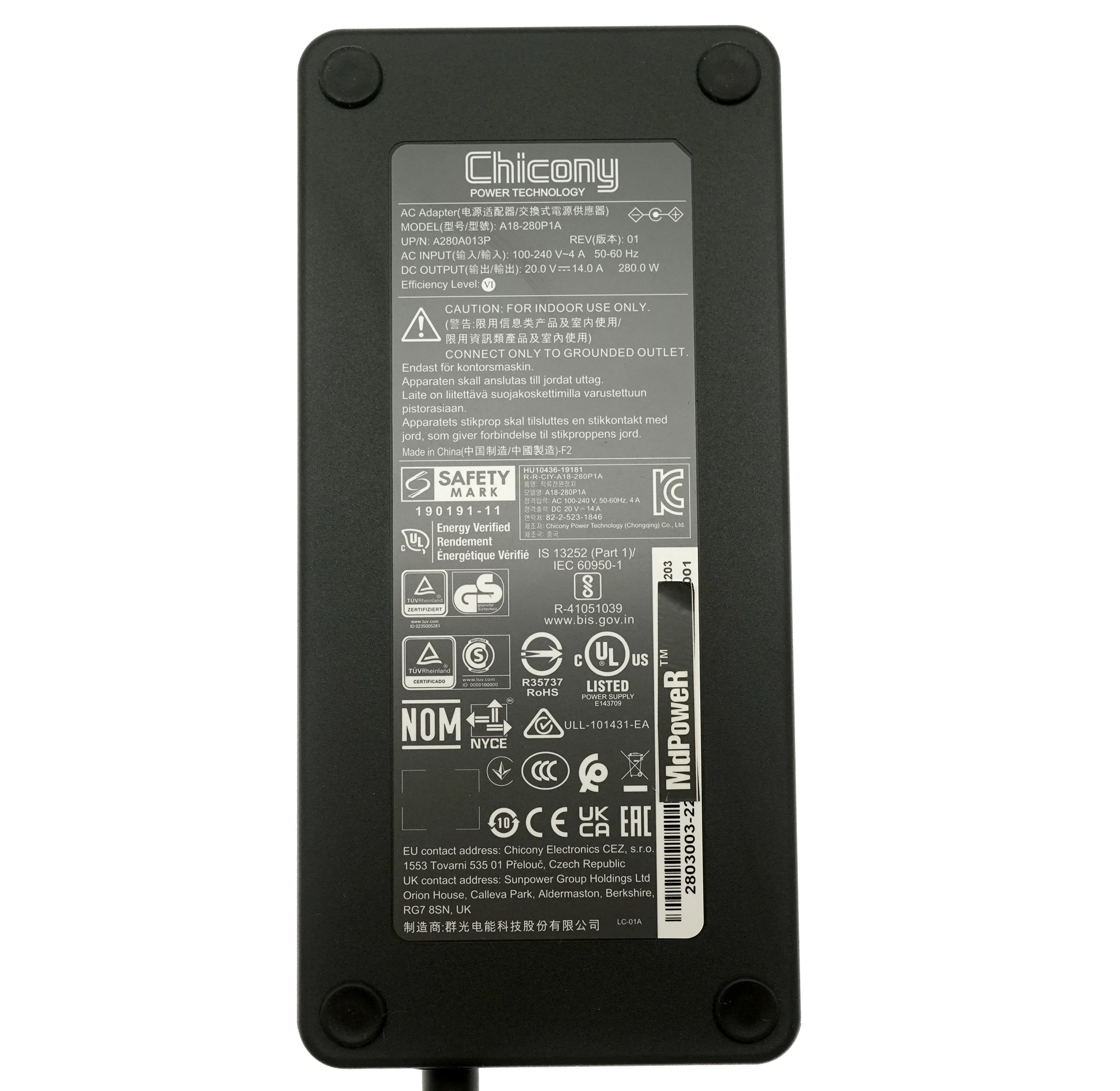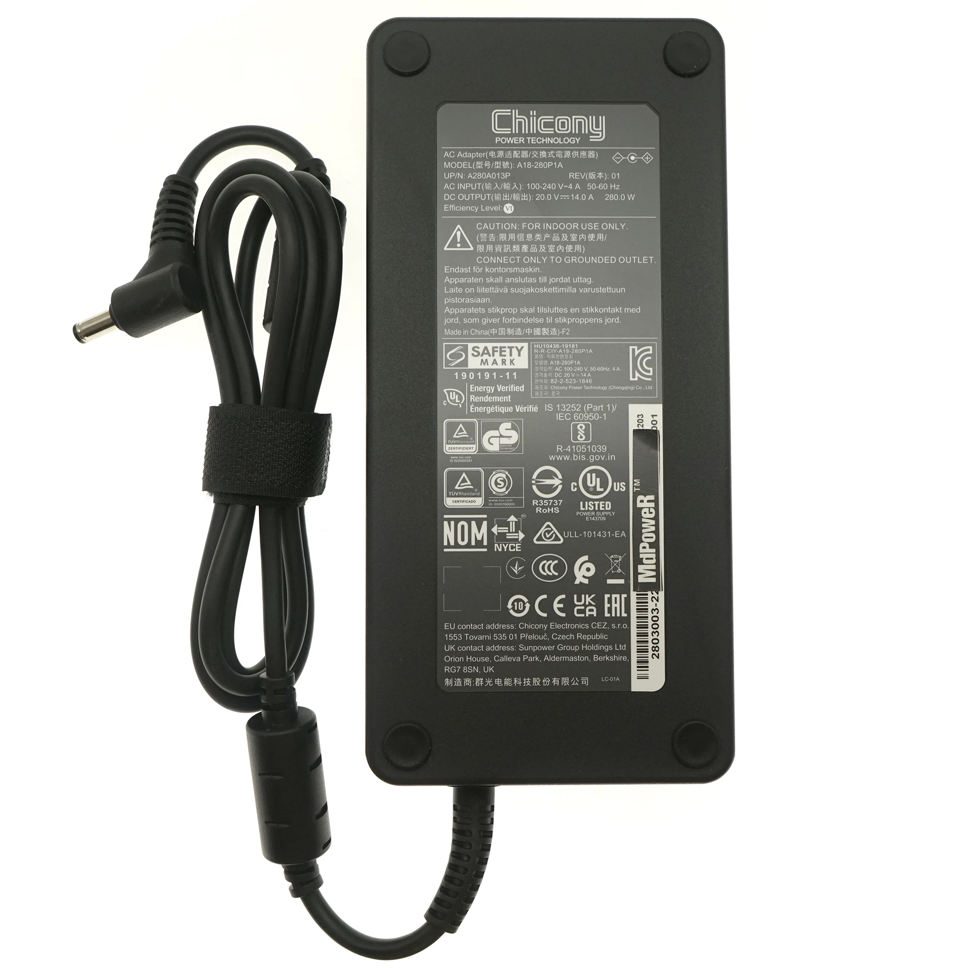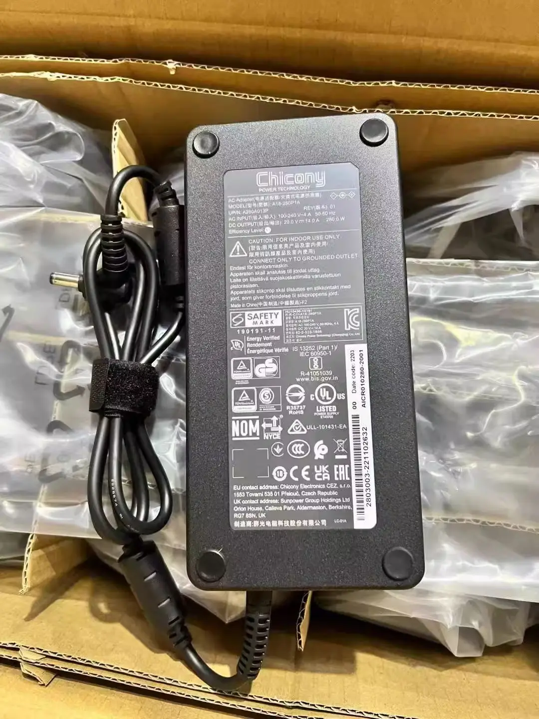 정품 Chicony A18280P1A 20V 14A 280W 노트북 어댑터 충전기 Schenker XMG NEO 15E22qrn Gigabyte AORUS 15X ASF/RTX4070 POWER LOGIC 공급 장치