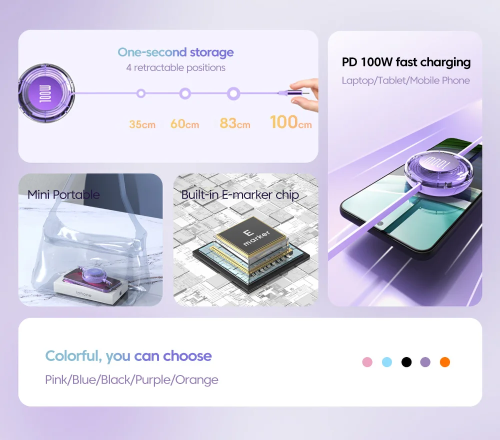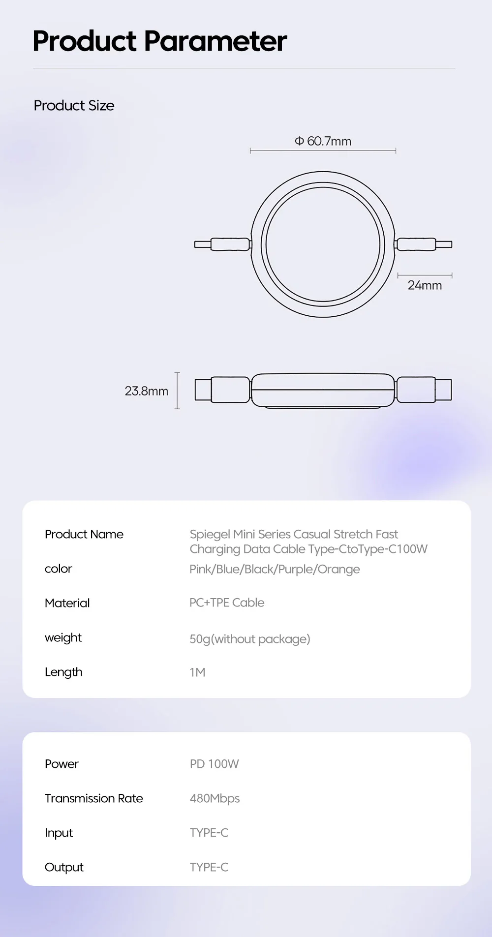 스트레치 고속 충전 데이터 케이블 TypeCtoTypeC100W