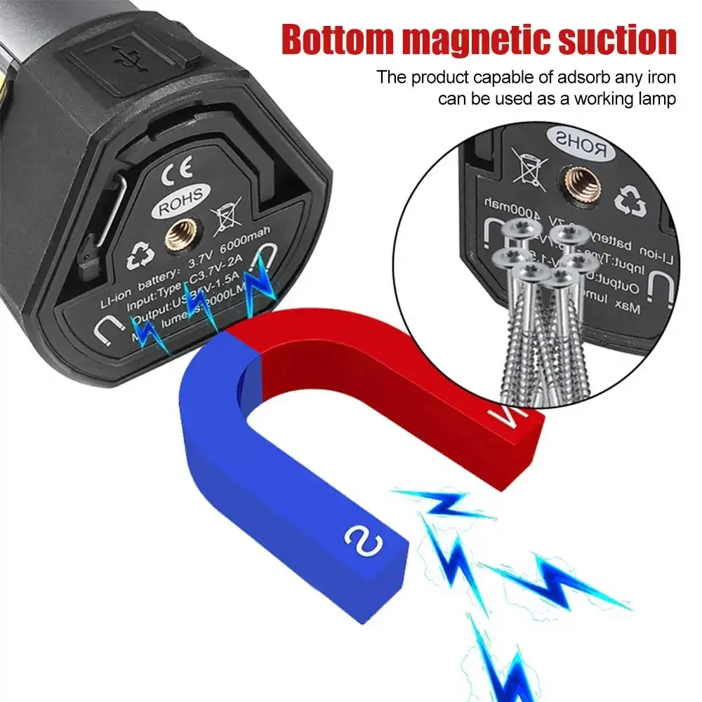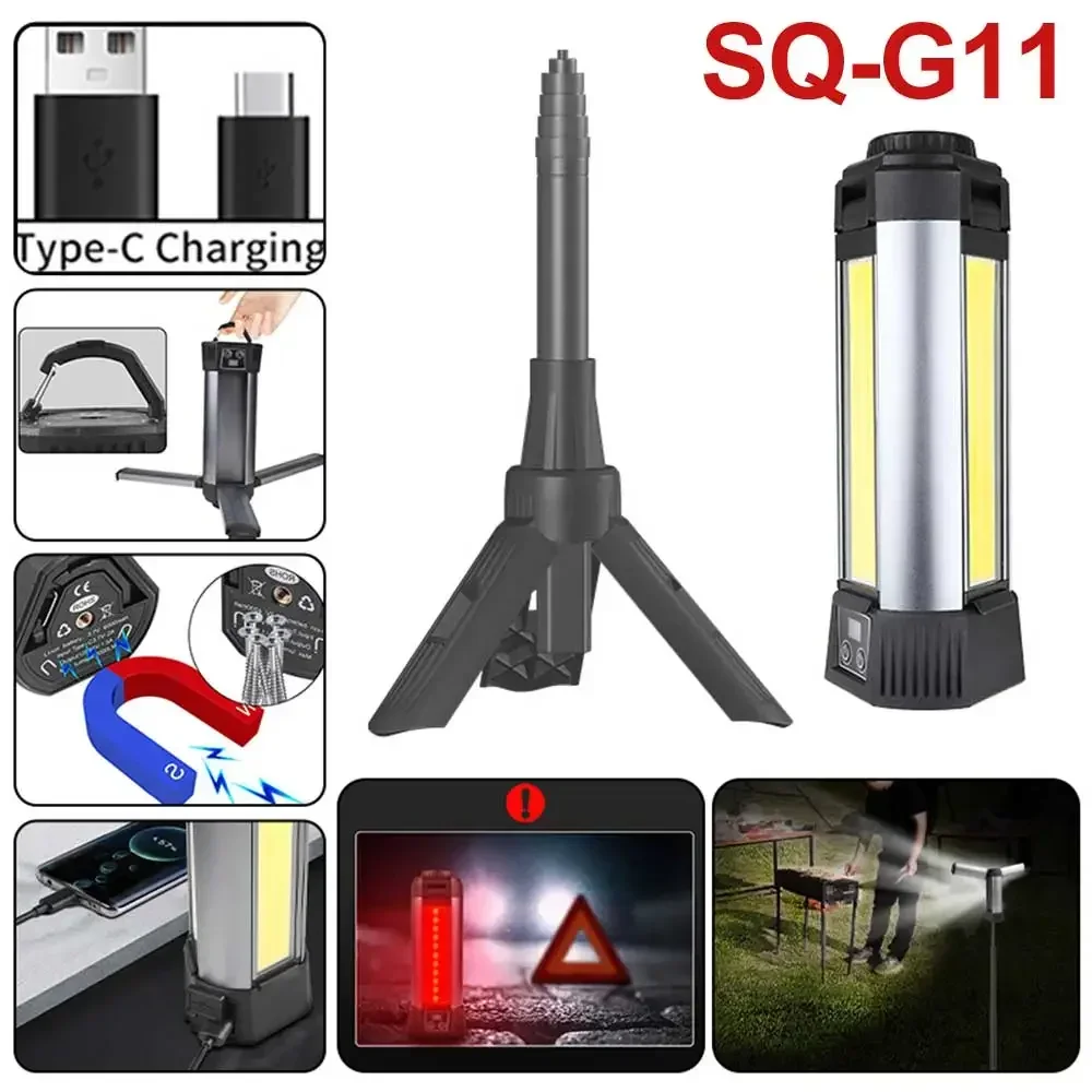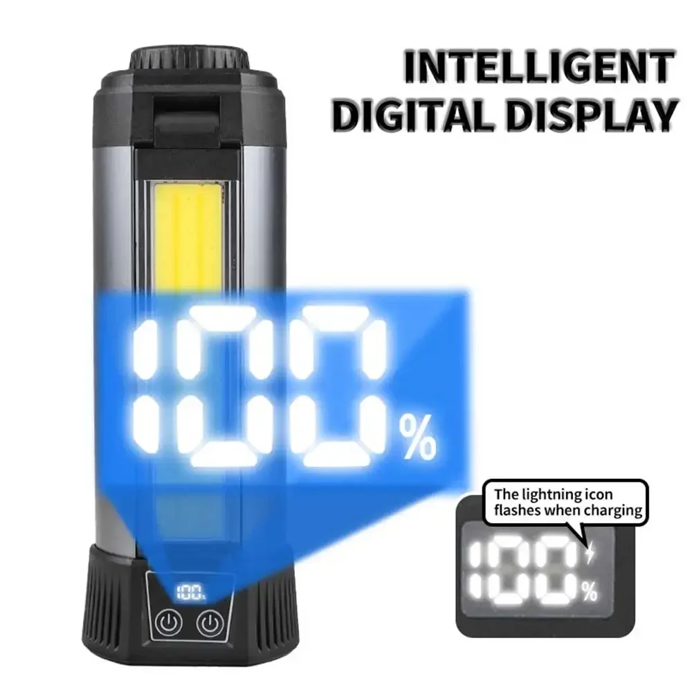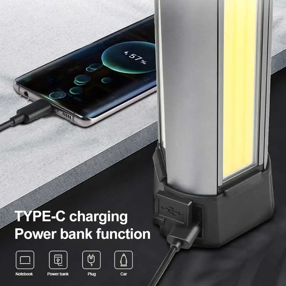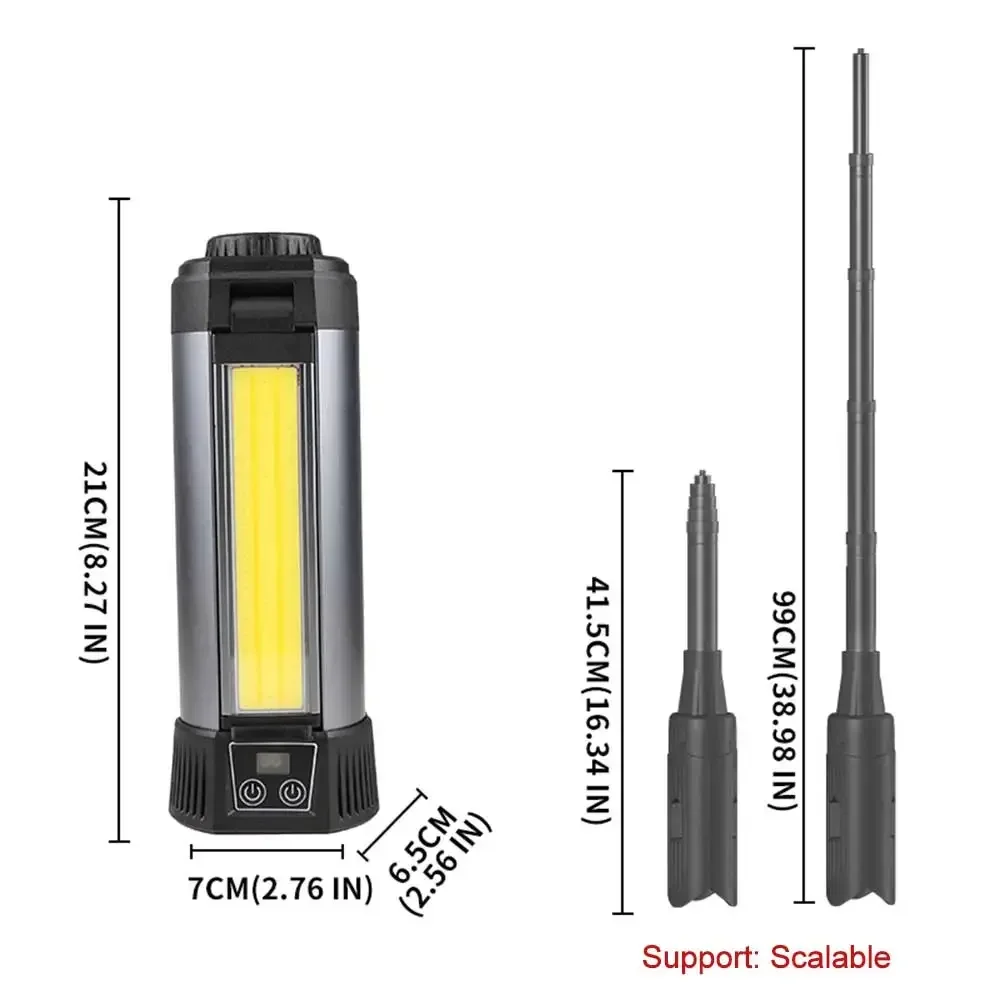 후크 포함, 자석 포함, 삼각대에 장착 가능, 브래킷 접이식 가능, 대형 표면 COB 투광 광원 3개,