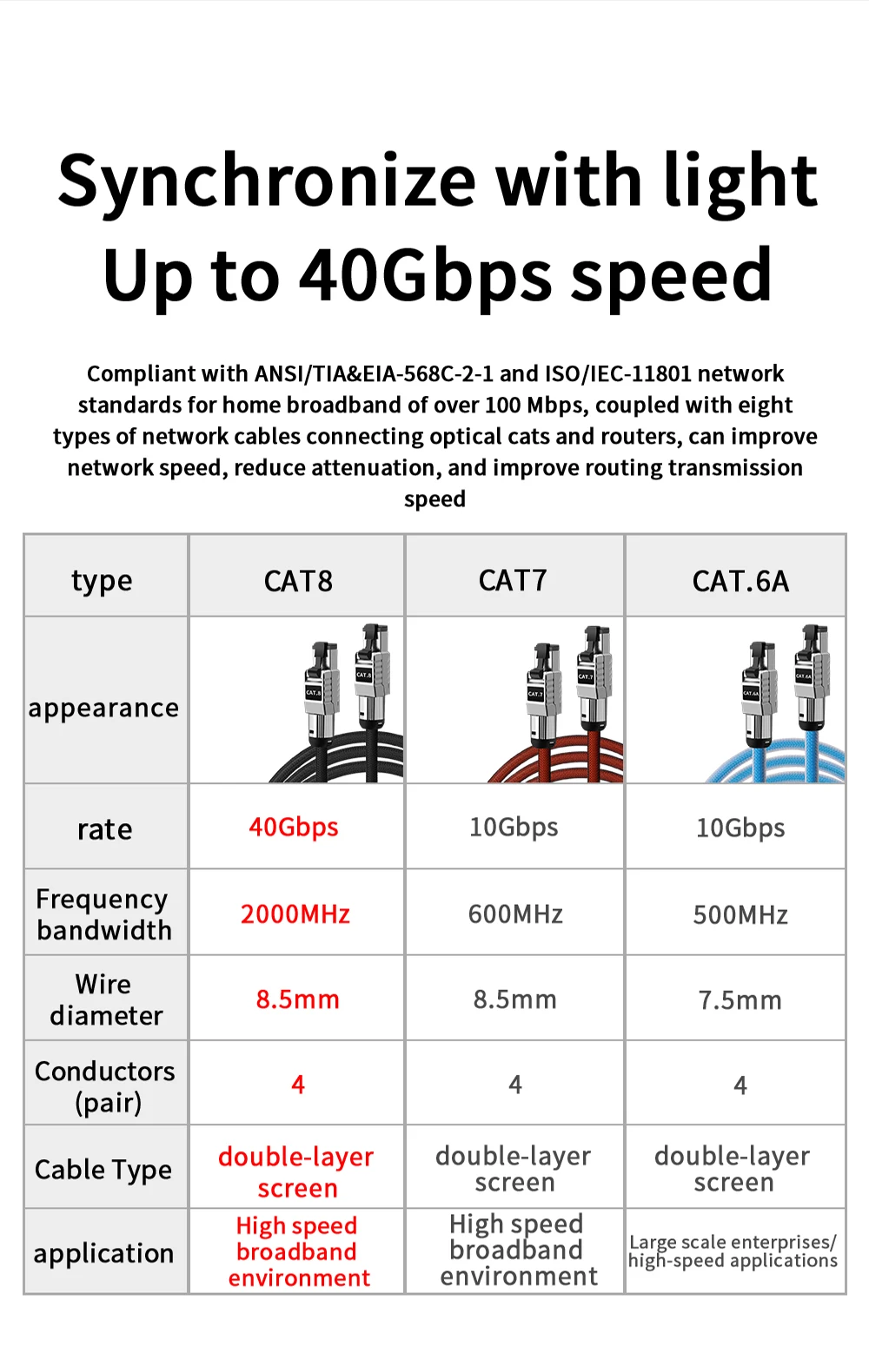 1.40gbps 최고급 버전 초고속 거침없는 추진력10 기가비트 차폐 카테고리 8 네트워크 케이블