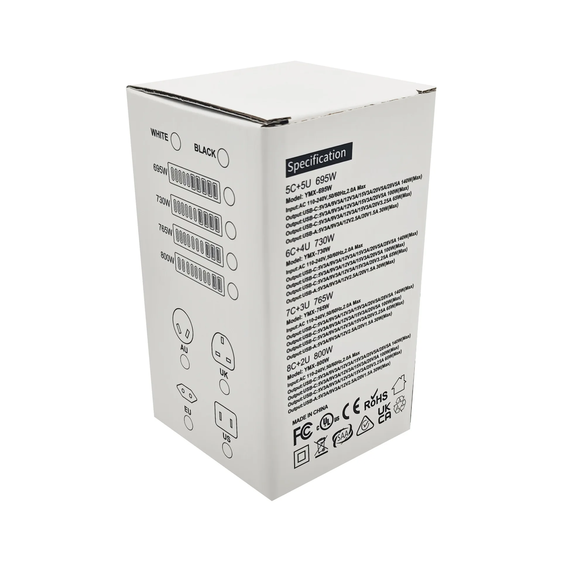 | Plug standard | US EU UK AU |