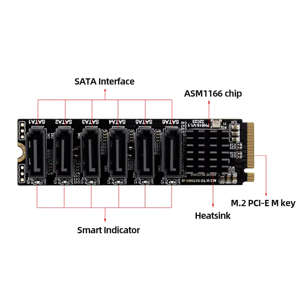 4.설치가 용이함:Transfer Expansion Card 설치는 매우 간단합니다.마더보드의 M.2 슬롯에 연결한 다음 연결 케이블을 다른 SATA 장치에 연결하기만 하면 됩니다.이 어댑터 카드는 외관이 컴팩트하며 공간을 많이 차지하지 않고 섀시 내부에 쉽게 설치할 수 있습니다.