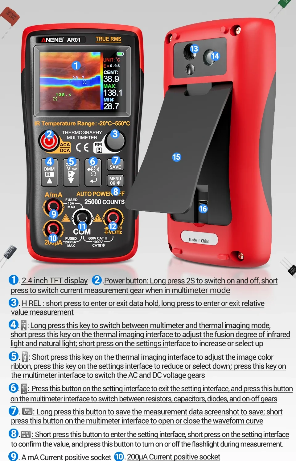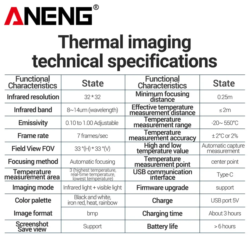 | 모델 번호 | ANENG AR01 Thermal Imaging Multimeters |