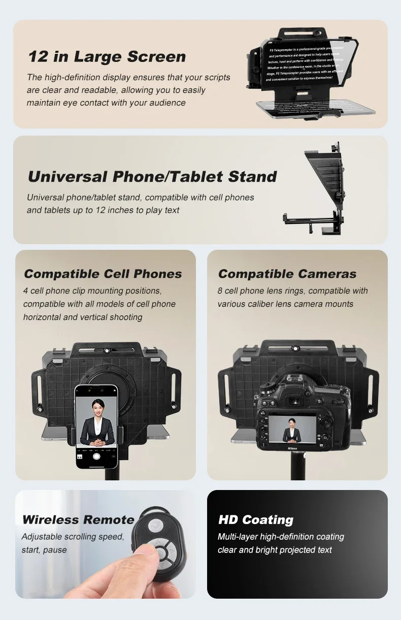 태블릿 노트북 스마트 폰 카메라 호환 Soonpho F7 스트리밍 녹화 비디오 Telepronter 텔레 프롬프터 F8