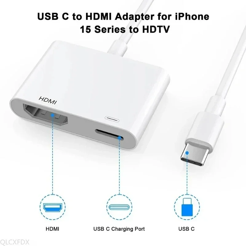 애플제품 호환 15 Pro용 USB CHDMI 어댑터, 아이폰제품 호환 Type C 디지털 AV 어댑터 4K 화면 미러링 커넥터 (HDTV, 프로젝터, 모니터 연결)