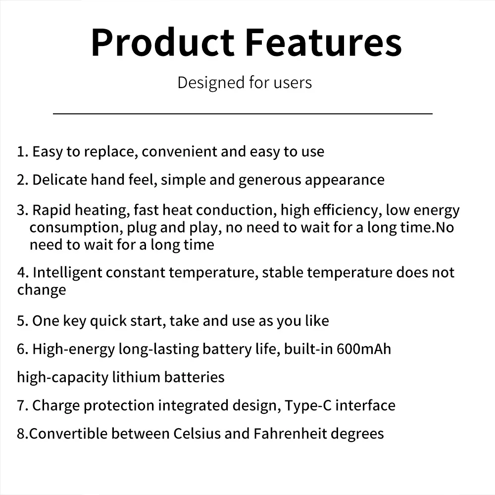 USB 납땜 인두 미니 소형 납땜 인두 세트 휴대용 가정용 유형C 인터페이스 600mAh 배터리 조절 가능한 온도 설명: 1. LED 디스플레이 화면으로 설계된 3단 지능형 온도 조절, 300450 사이의 온도 조절 가능℃, 섭씨와 화씨 사이에서 전환할 수 있습니다. 2. 통합 플러그인 납땜 인두 헤드, 플러그 앤 플레이, 납땜 인두 헤드는 나사를 풀어 교체할 수 있으며 작업이 간단하고 편리합니다. 3. 걱정 없는 충전: 이 제품은 충전을 위해 컴퓨터, USB 인터페이스 또는 모바일 전원에 연결할 수 있는 TypeC 충전 포트를 채택합니다. 4. 대용량 리튬 배터리 구성, 20분의 고에너지 내구성 5.8w 전력, 통합 가열 코어 납땜 인두 헤드, 6초 주석 용융 및 빠른 열 전도성 매개변수: 제품 이름: 무선 USB 납땜 인두 납땜 인두 팁: c200s 전압: 5v 힘: 8w 색상: 회색/주황색(선택 사항) 배터리 용량: 1000mah 기능: 3단 온도 조절 스위치 조정 가능한 온도: 300450℃ 충전 시간: 90분 배터리 수명: 20분 수면 모드: 10분 후 자동으로 잠자기 충전 인터페이스: typeC 충전 포트 제품 크기: 190*16.5mm (납땜 인두 헤드 설치 후) 패키지에는 다음이 포함됩니다. USB 납땜 인두(둥근 팁)*1 납땜 인두 홀더(스펀지 포함)*1 충전 케이블*1 납땜 와이어 * 1 도구 상자*1