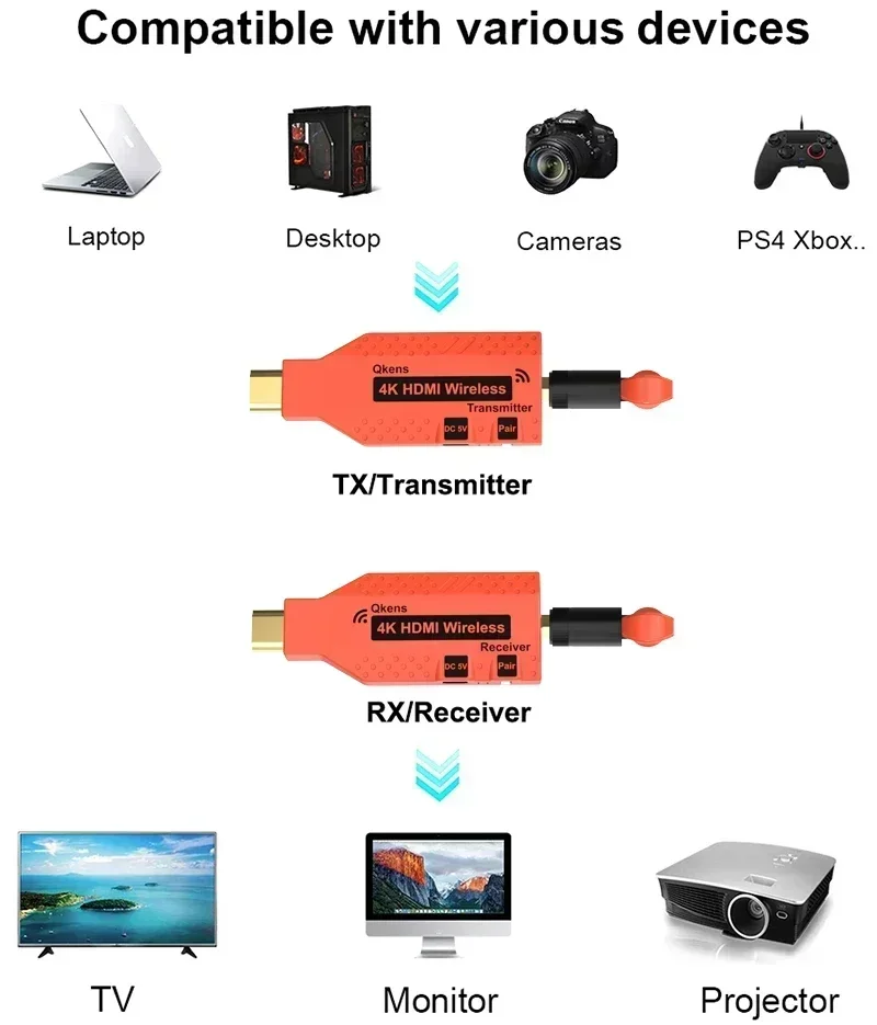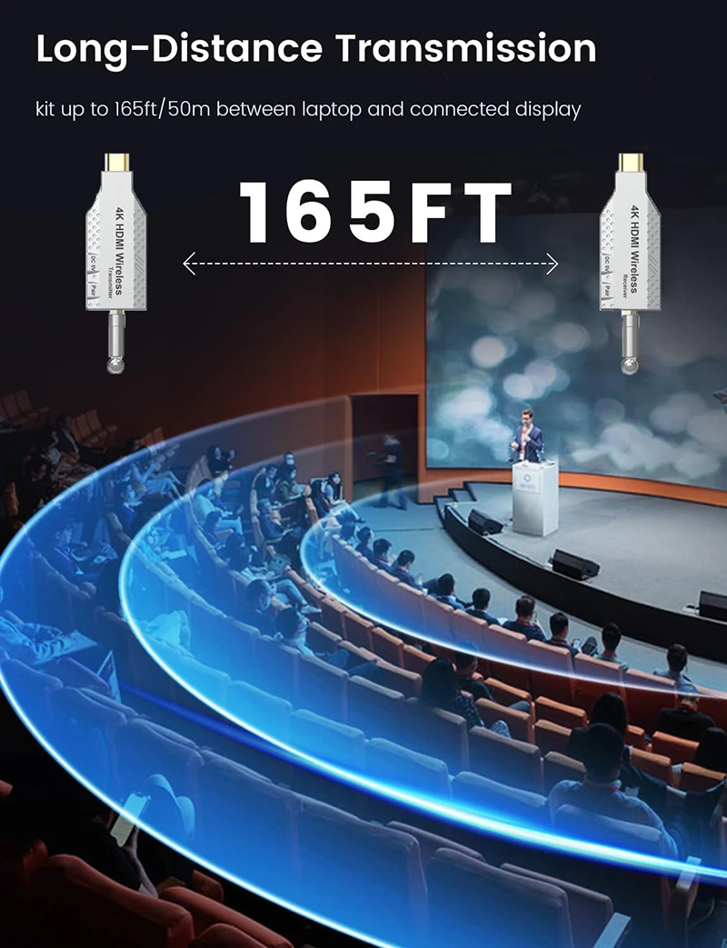 1. 내장 무선 전송 프로토콜을 통한 HDMI 비디오 및 오디오 전송, WiFi 또는 인터넷 필요 없음