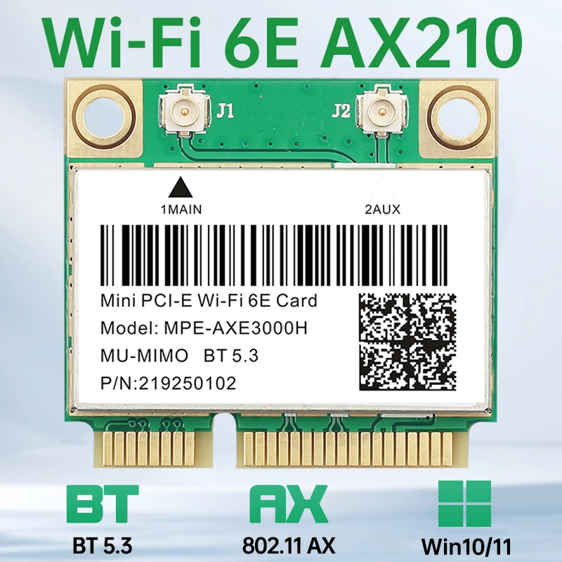 WiFi 6E AX210HMW 미니 PCIE BT5.3 Wifi 카드 Bluetooth 5.3 AX210 네트워크 카드 Win10/11 용 802.11AX 무선 네트워크 어댑터
