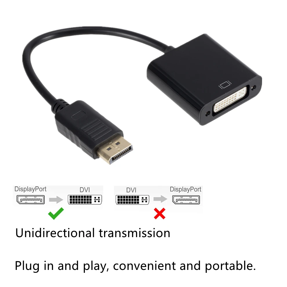 DisplayPort 신호 만 DVI로 변환 할 수 있습니다. 이것은 양방향 케이블이 아닙니다.