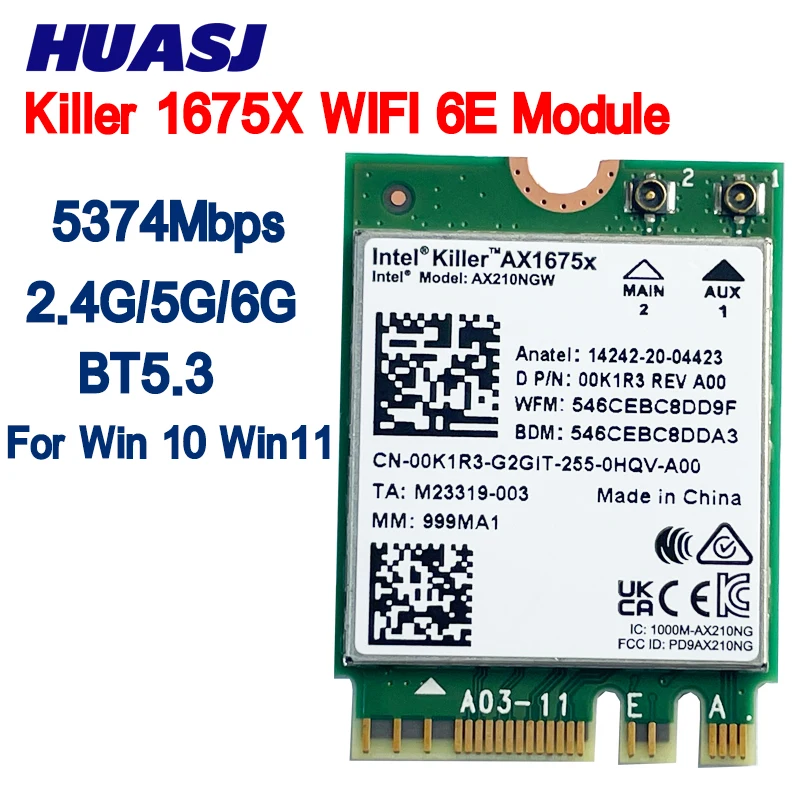 킬러 1675x AC 듀얼 밴드 2.4Gbps 와이파이 6E 무선 AX210 와이파이 카드 AX210NGW 802.11AX 블루투스 5.3 노트북 윈도우 10