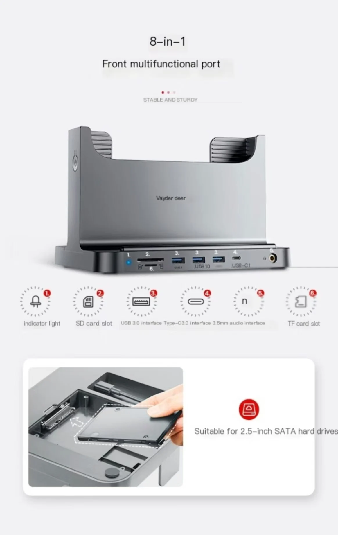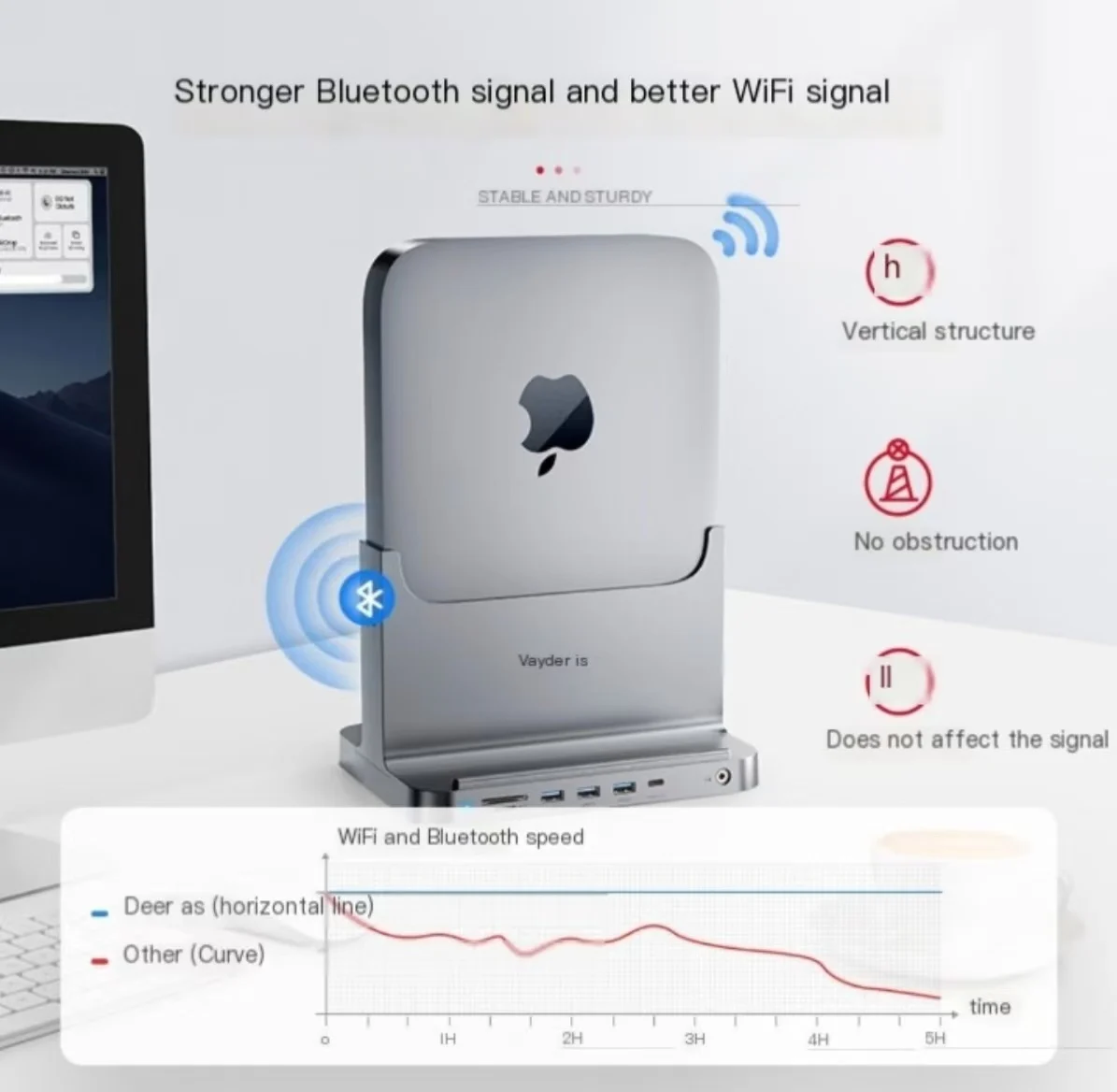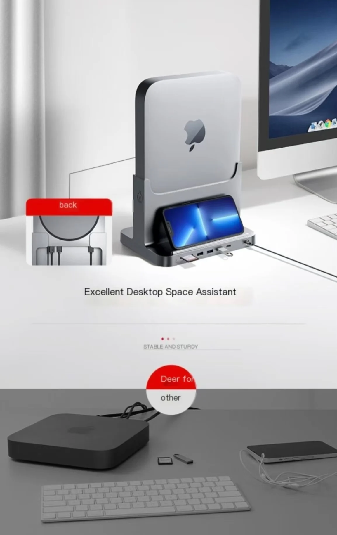 Luwei 노트북 수직 스탠드 도킹 스테이션 C타입 HDMI 스플리터 미니 맥 USB 변환기