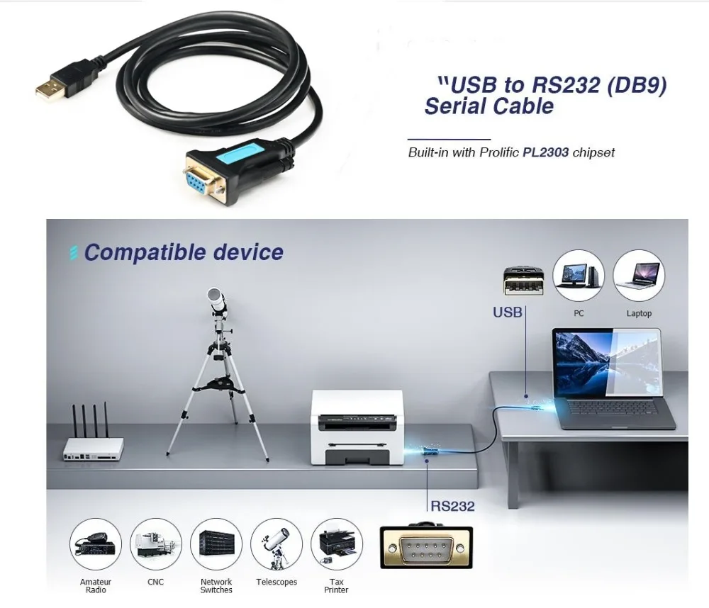 표준 USB 유형 A Male - 표준 9핀 DB9 RS232 직렬 커넥터;