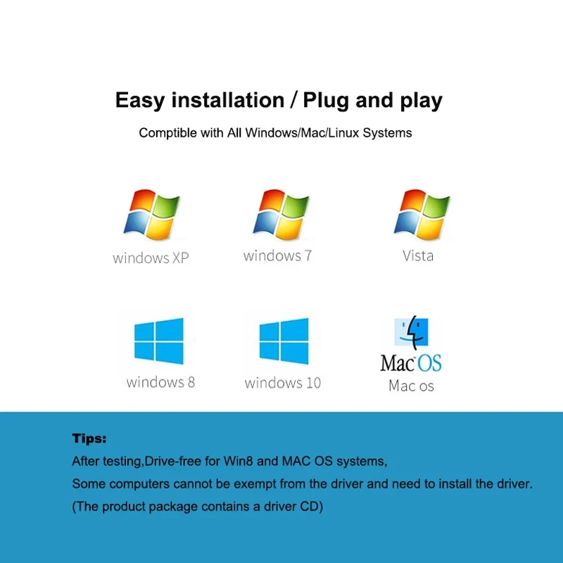 - Windows 10/8/7/Vista/XP//2000(Windows 7,8,10은 드라이버를 자동으로 감지하고 설치해야 함)