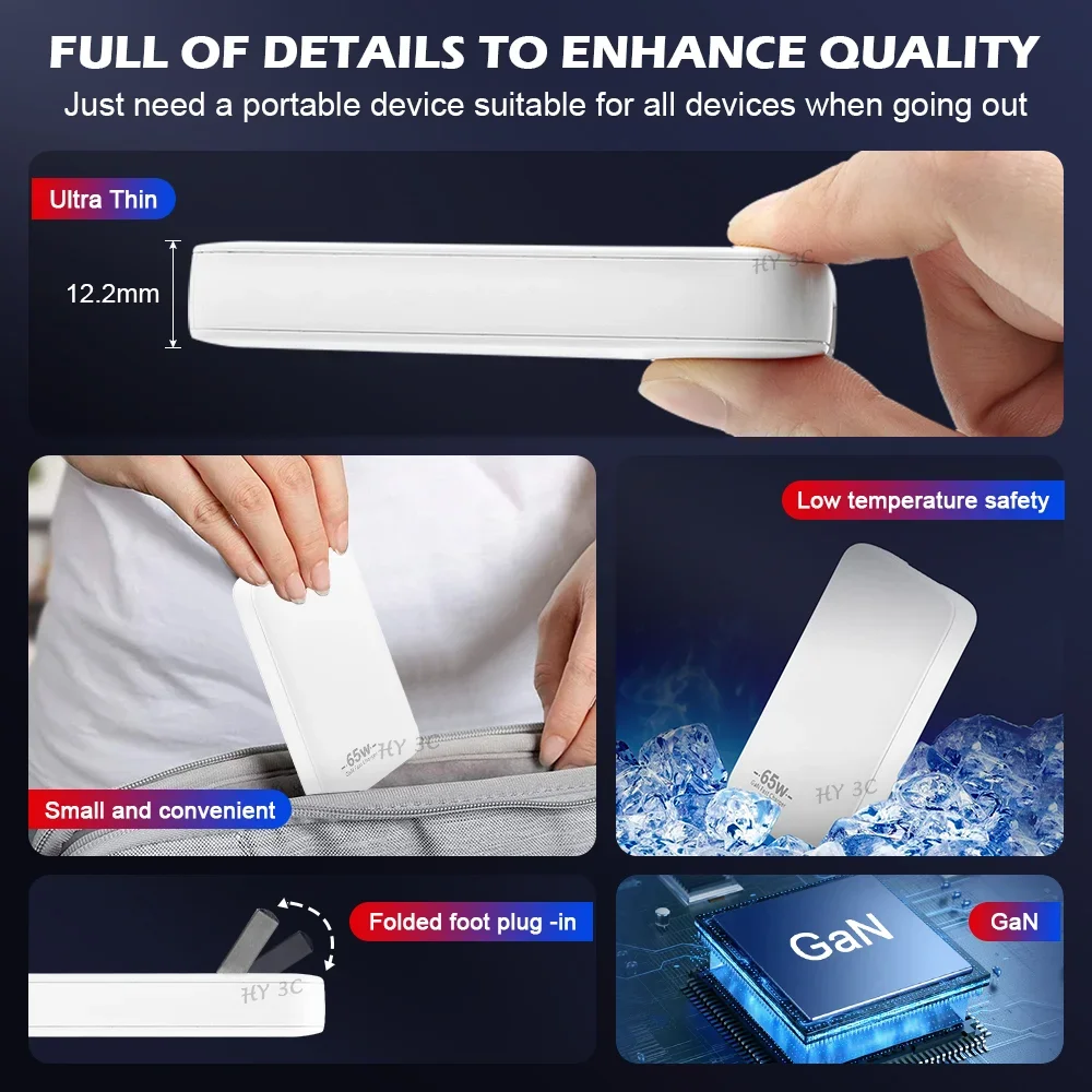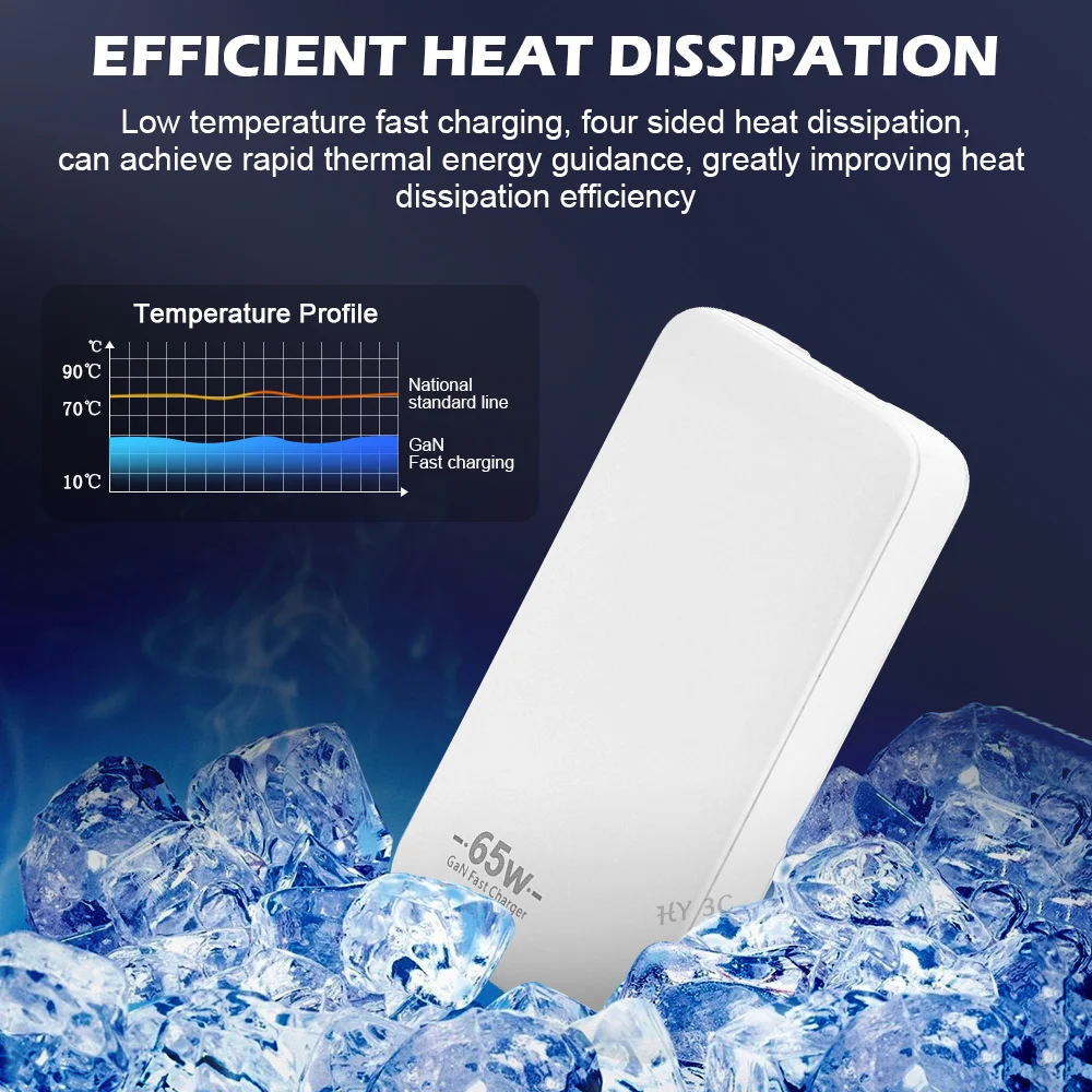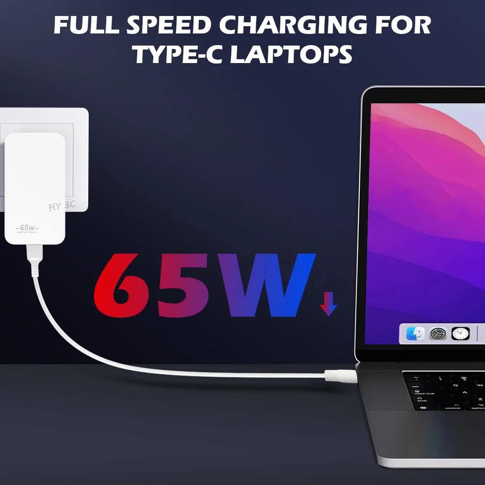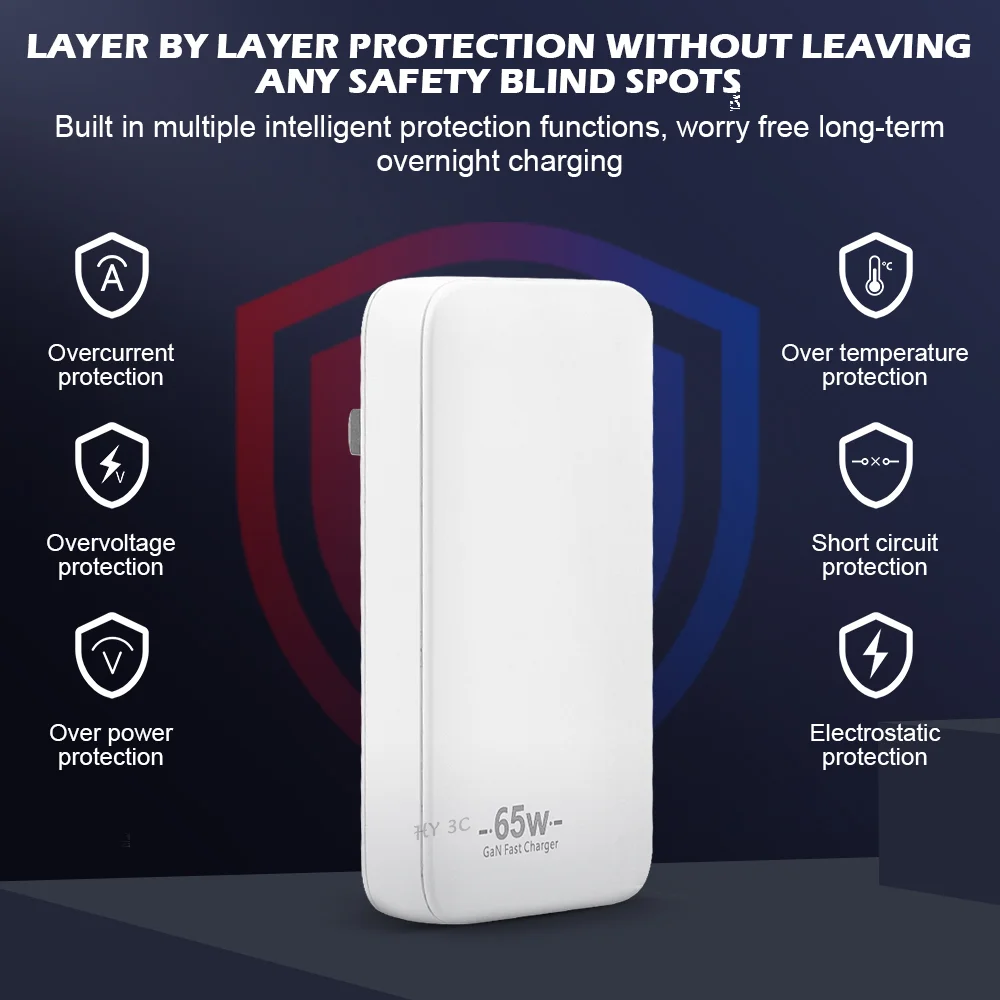 초박형 65W GaN 충전기는 거의 모든 USBA 및 USBC 휴대폰, 태블릿, 노트북 등에 고속 충전을 제공합니다.