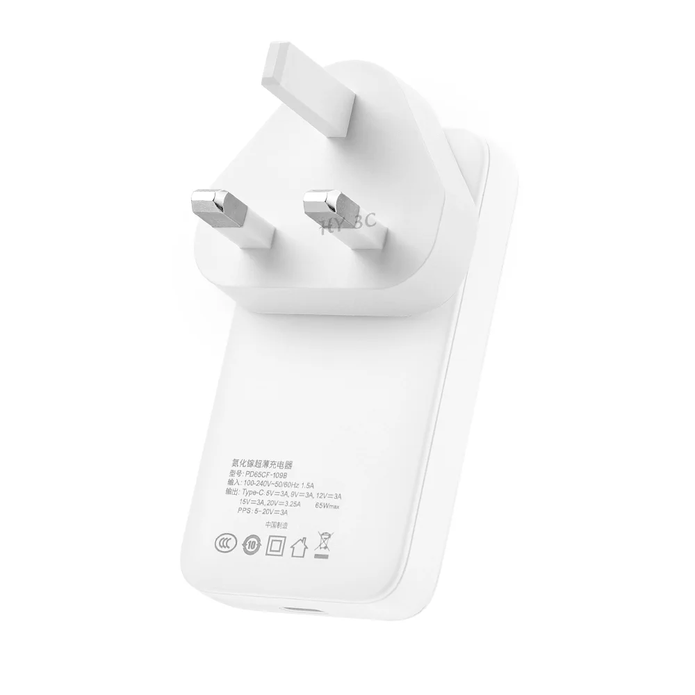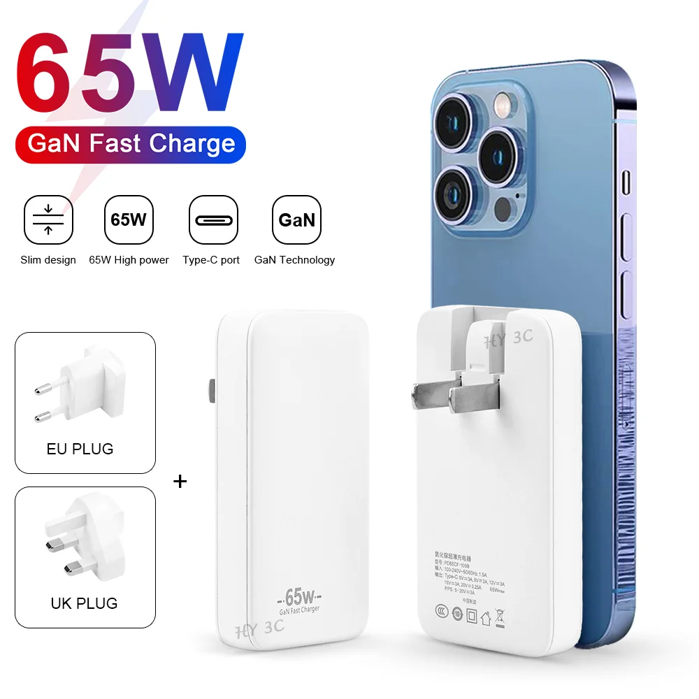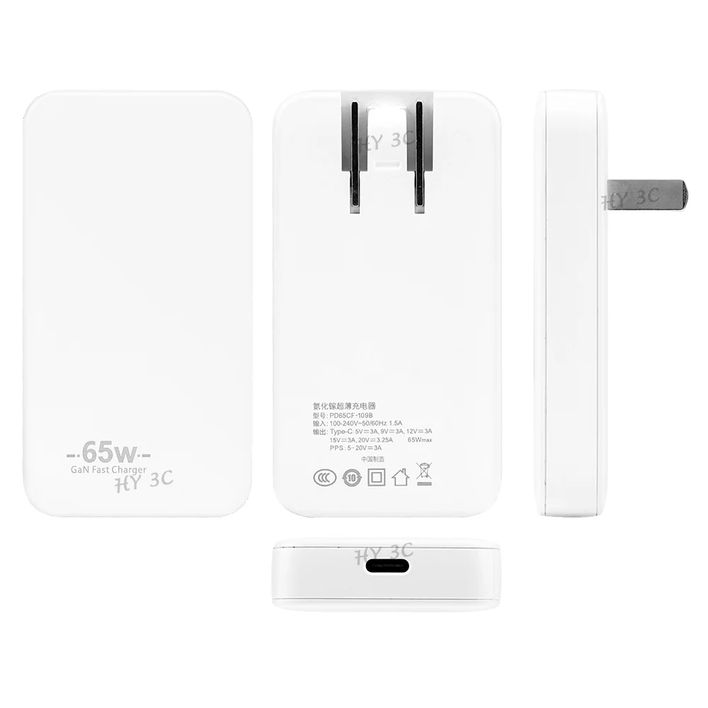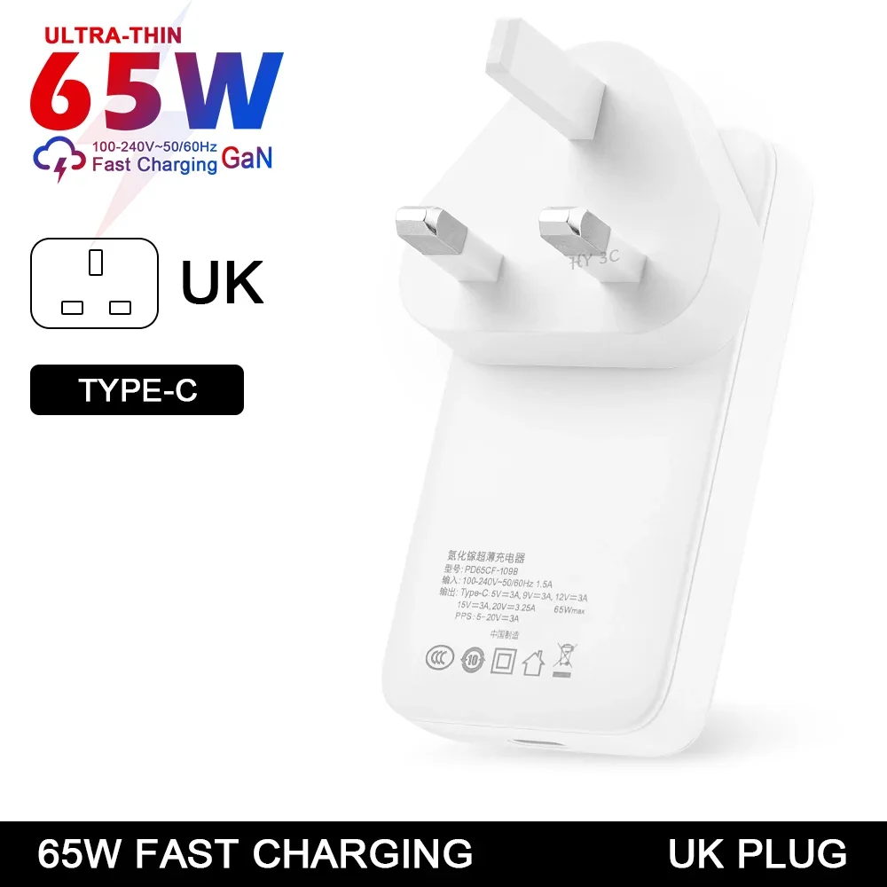 GaN 65W 초박형 EU/미국/영국 PLUG USB C 빠른 충전 PD 고속 충전 변환 플러그 전화 노트북을위한 국제 여행