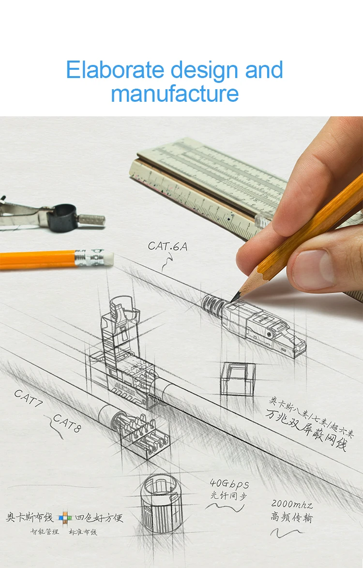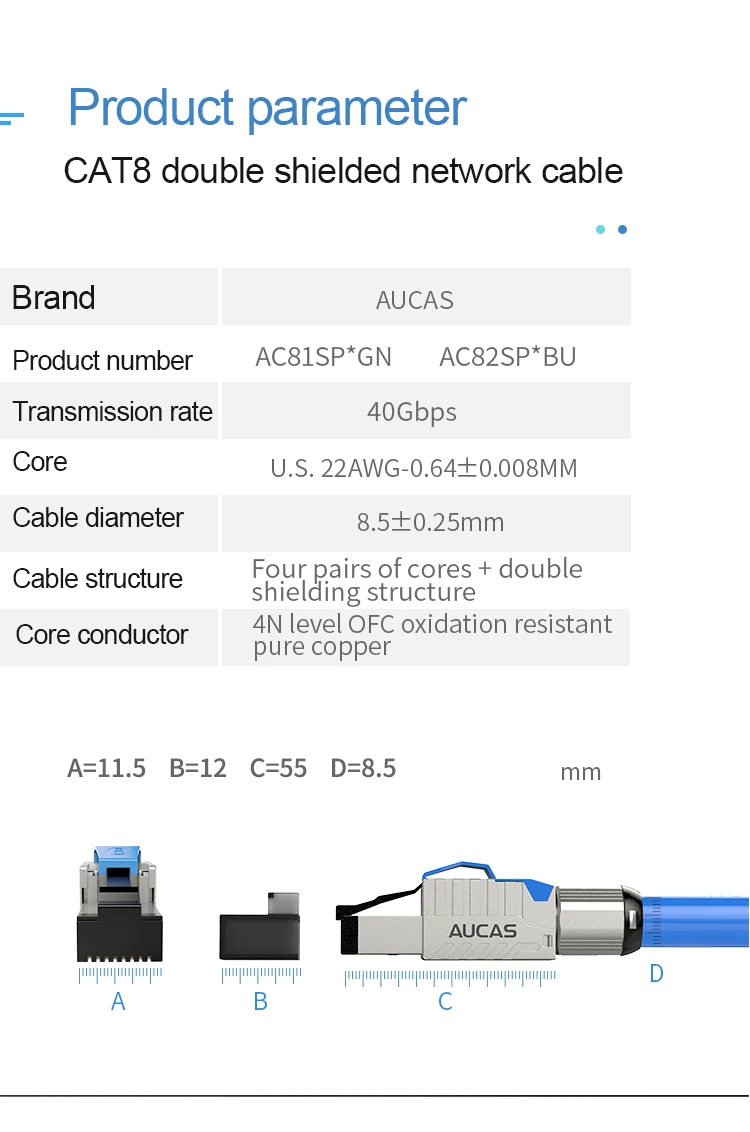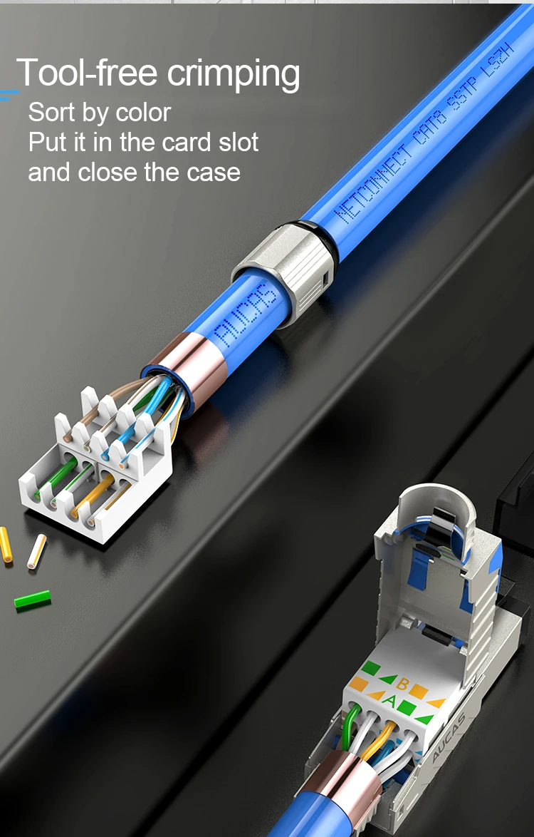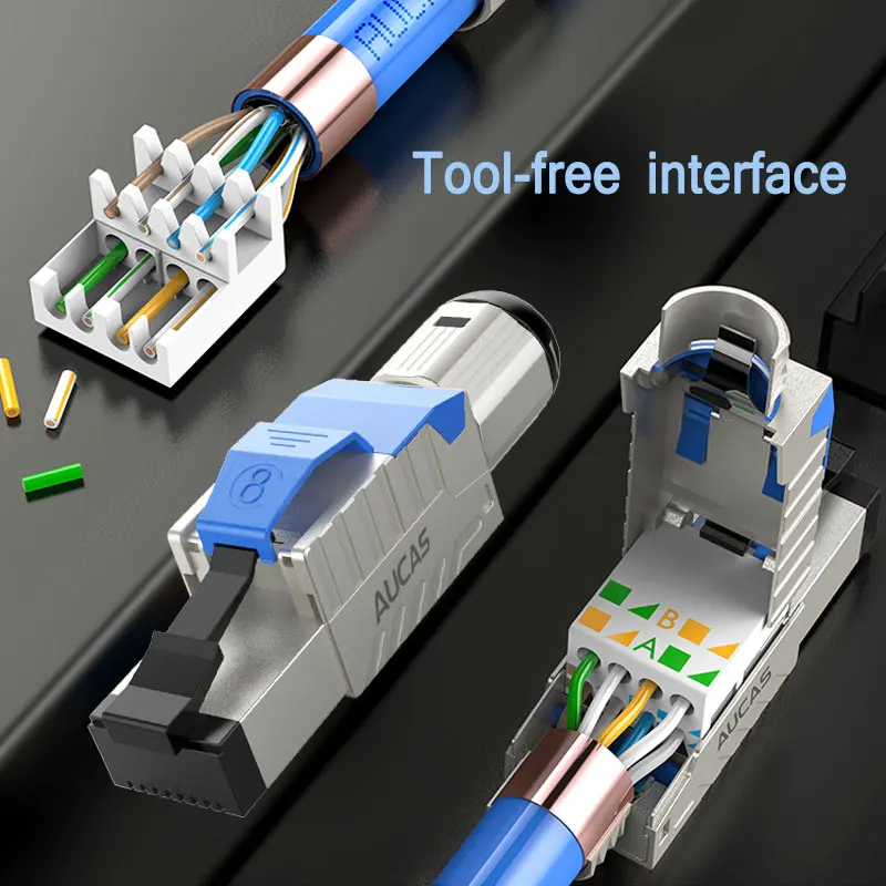 CAT.8 차폐 공구가 없는 RJ45 커넥터 장착.