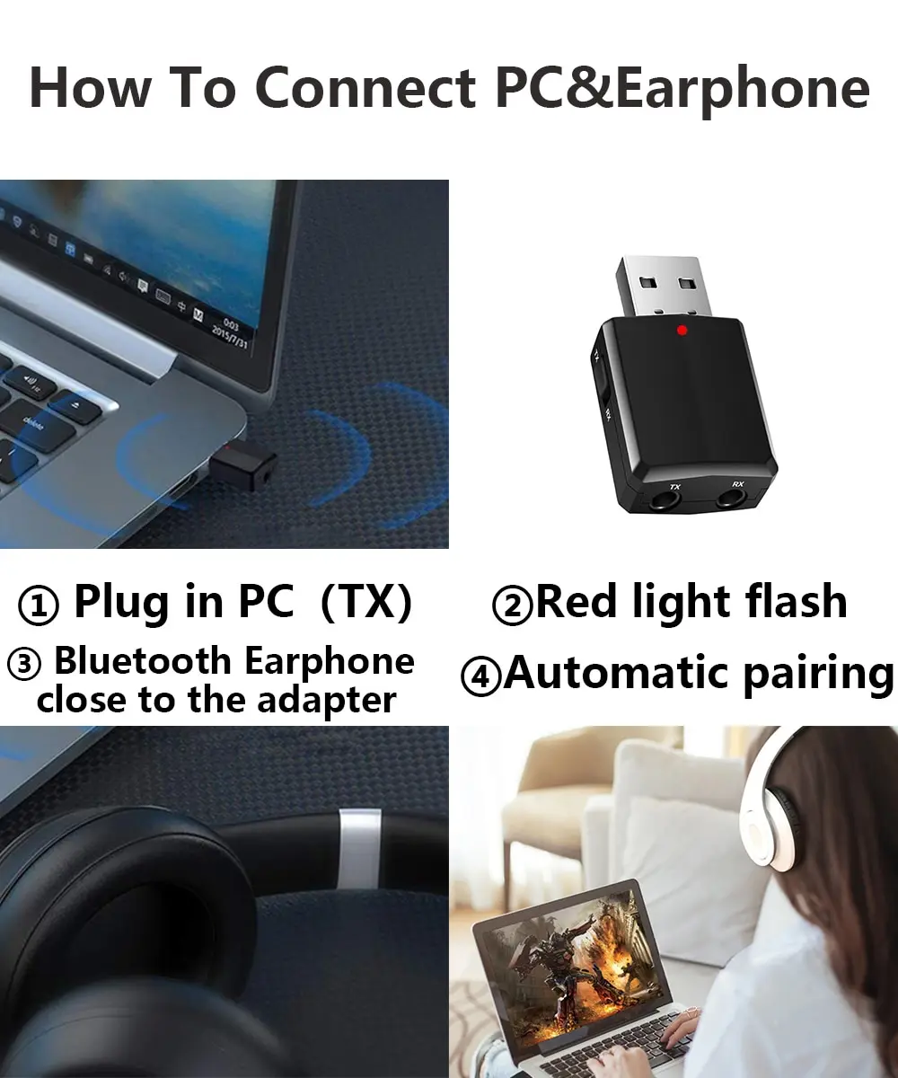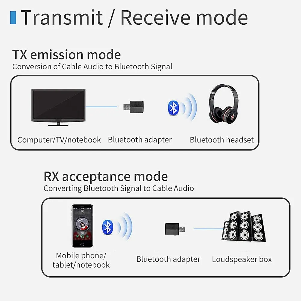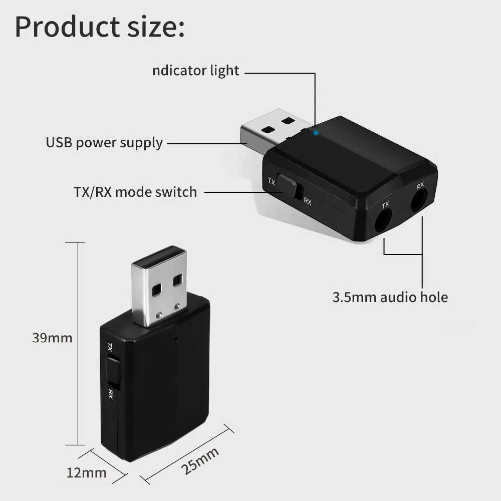 3in1 USB 블루투스 5.0 송수신기 EDR 어댑터 동글 3.5mm AUX (TV, PC, 노트북, 헤드폰, 홈 스테레오, 차량용 HIFI 오디오 지원)