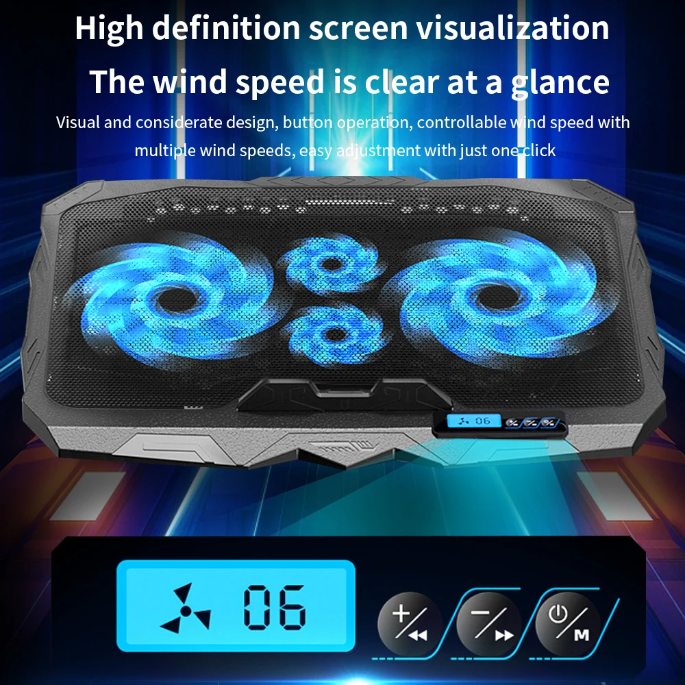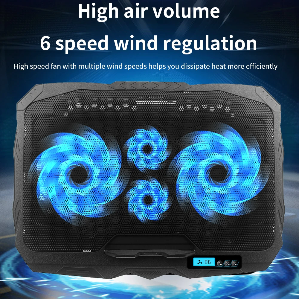 TISHRIC 노트북 쿨러 네 팬 게임 노트북 냉각 패드 Led 화면 1217 인치 노트북을위한 두 개의 USB 포트 1100RPM 노트북 쿨러