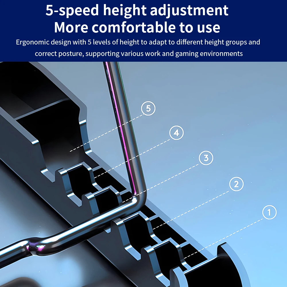 다양한 높이 그룹에 적응하고 자세를 교정하기 위한 5 단계 높이의 인체 공학적 설계, 다양한 작업 및 게임 환경 지원
