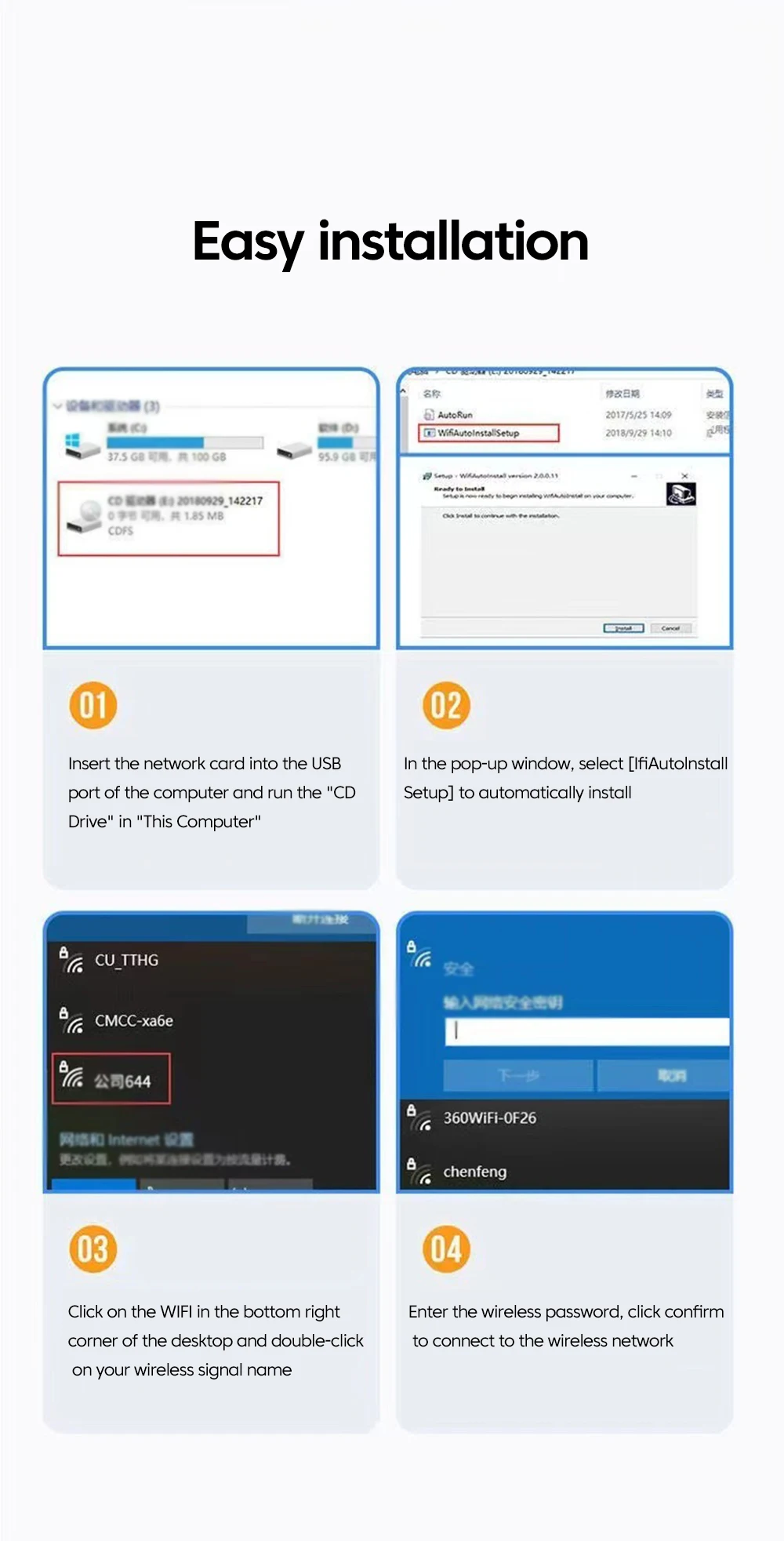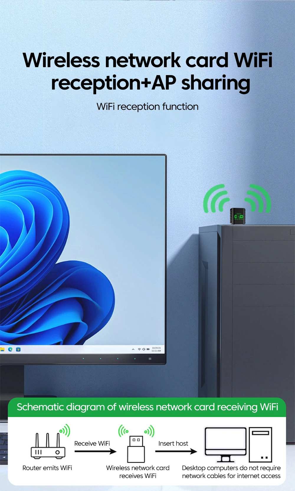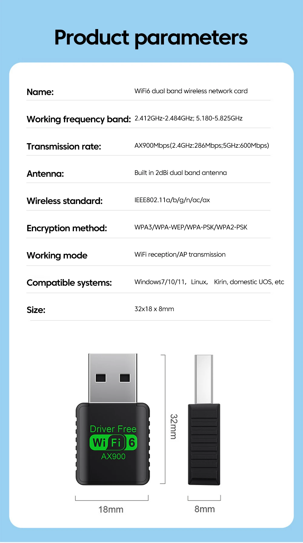 AX900 듀얼 밴드 무선 USB 네트워크 카드는 데스크탑 PC 및 기타 장치의 무선 연결에 적합하며 무선으로 인터넷에 액세스할 수 있는 편리하고 빠른 방법을 제공할 수 있습니다.네트워크 카드는 자동 감지 기능을 지원하며 자동으로 속도를 조정할 수 있습니다.