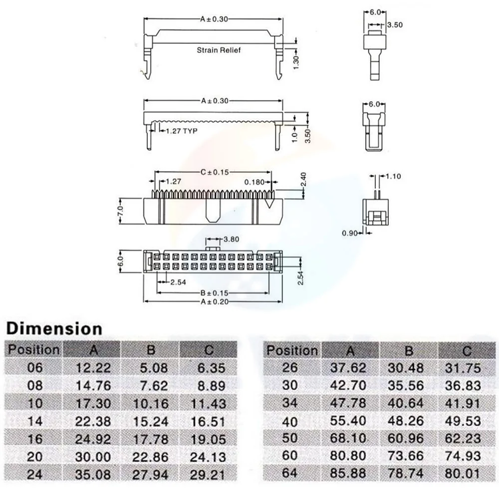 이름: FC 2.54mm IDC 소켓 커넥터색상: 블랙.