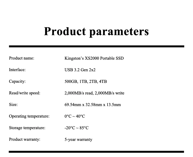 | SXS2000 Reading Speed | Up to 2000Mb/s |