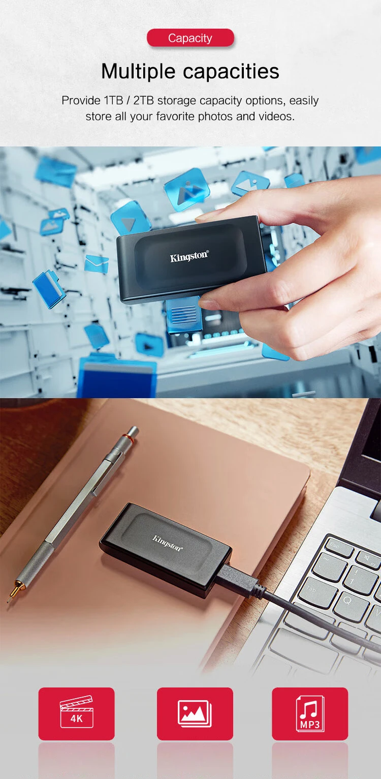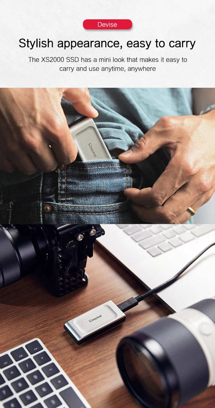 오리지널 킹스톤 PSSD 유형C USB3.2 솔리드 스테이트 드라이브 SXS1000 SXS2000 휴대용 SSD 하드 드라이브 1TB 2TB 4TB 500GB 외장 하드 디스크 PC와 전화 고속 HD