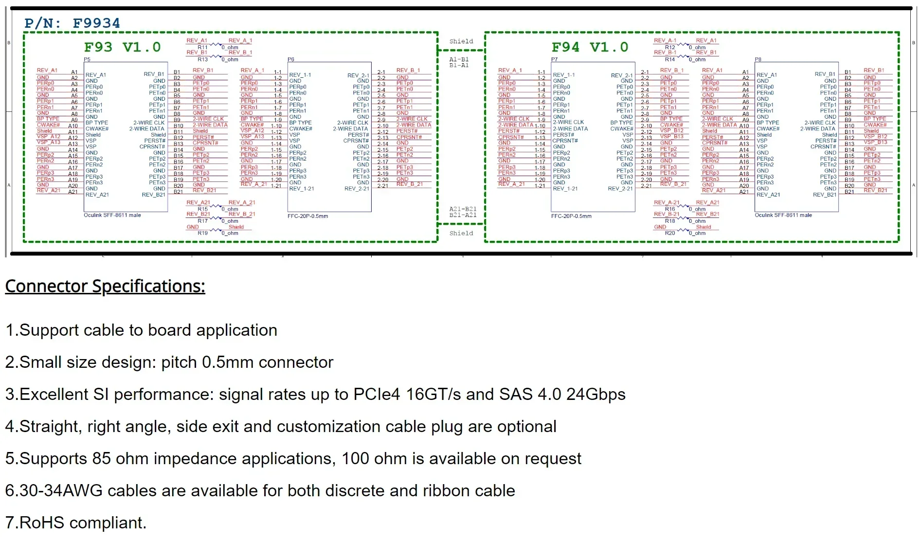 본 제품의 케이블 길이는 F9934의 길이입니다.PCB와 커넥터는 포함되지 않습니다.와이어 길이는 아래 그림을 참조하십시오.