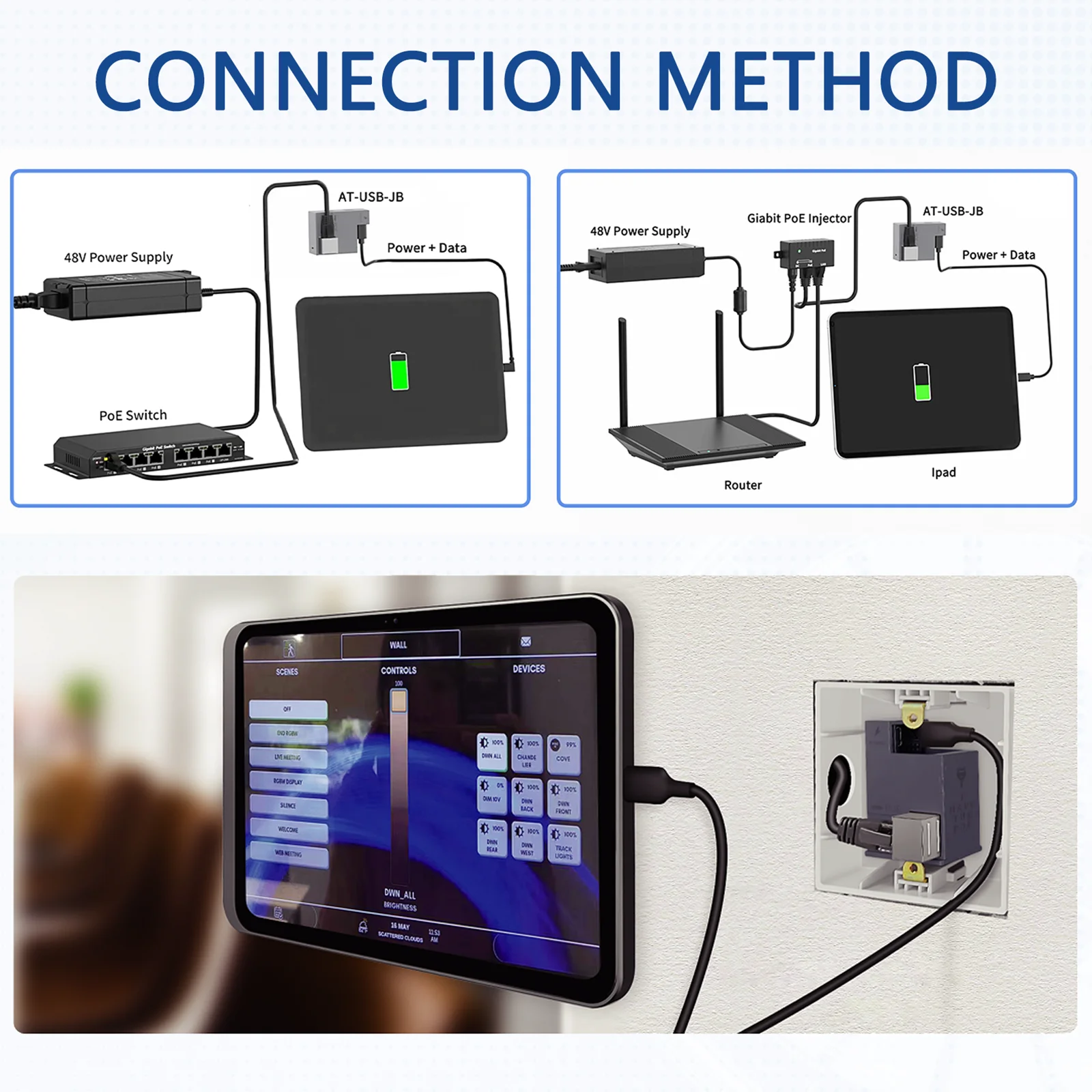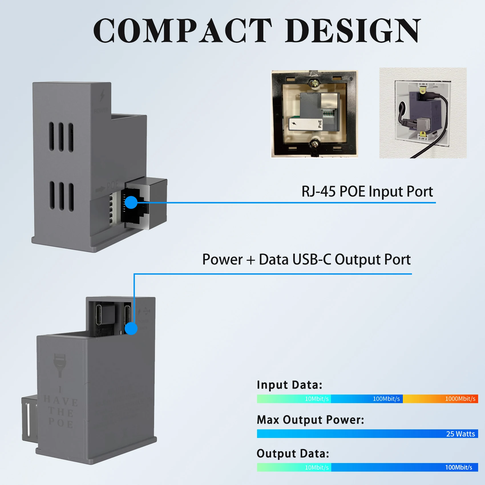ATUSBCPB 벽면 POE+ - USB 유형 C POWER LOGIC + 25W 출력을 통한 데이터 전달