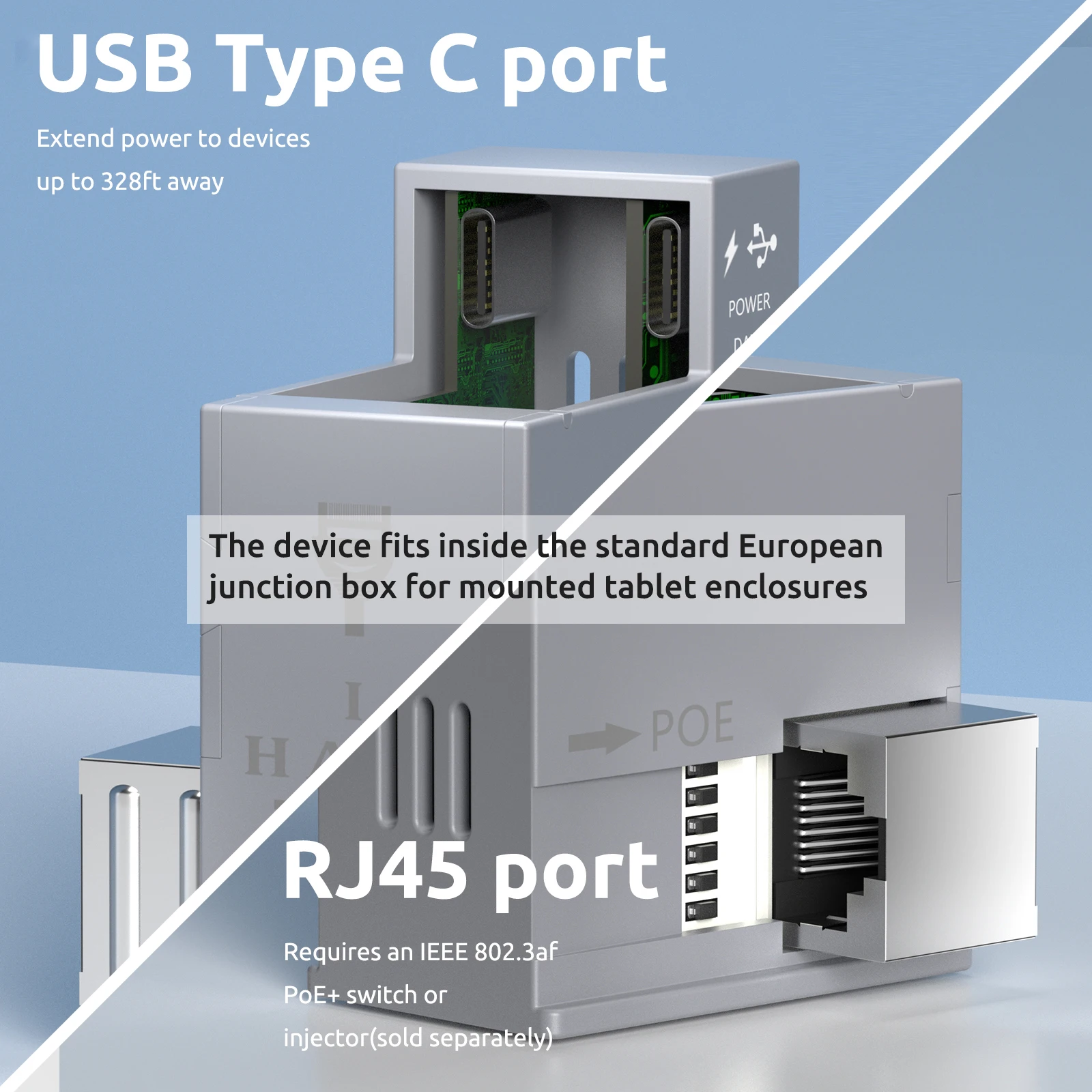PoEUSBC POWER LOGIC 및 데이터 어댑터는 POWER LOGIC 및 유선 이더넷 데이터를 태블릿, 디스플레이 등과 같은 USBC 장치로 확장하기 위한 강력한 솔루션입니다.