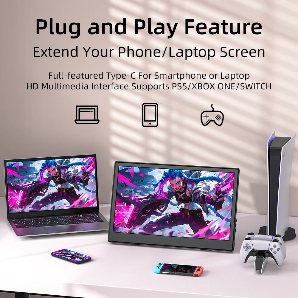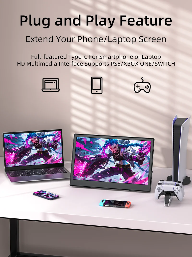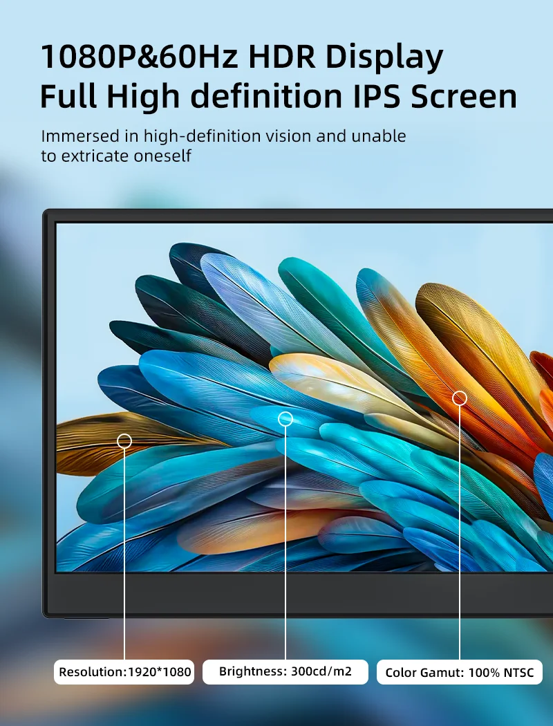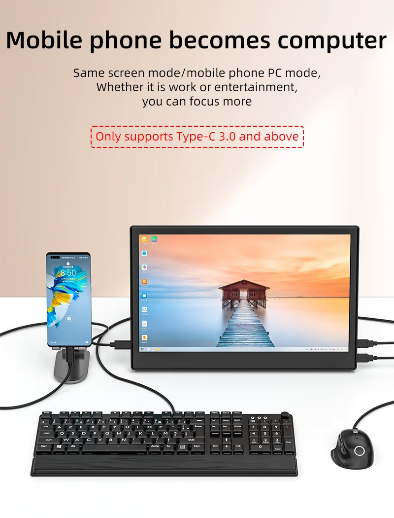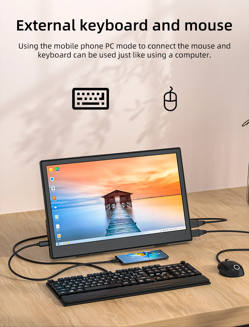 이 15.6인치 휴대용 모니터는 매우 편리할 뿐만 아니라 활용도도 뛰어납니다.2개의 USB 포트를 갖추고 있으며 외부 키보드, 마우스 및 기타 주변 장치를 지원하므로 사무실에서 보다 효율적인 작업에 기여합니다.휴대폰을 연결하면 휴대폰 화면을 PC 모드로 전환하고 멀티태스킹을 쉽게 수행하며 업무 효율성을 높일 수 있습니다.특히 집 밖에서 일해야 하거나 자주 다른 위치를 전환해야 하는 사용자에게 적합합니다.