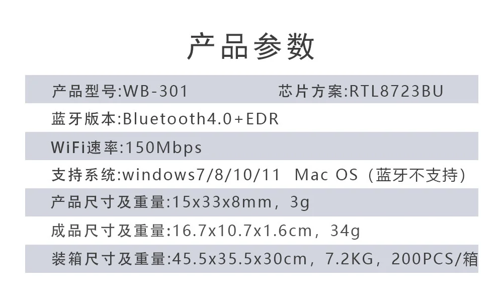 USB 무선 네트워크 카드 150m + Bluetooth 4.0 2 in 1