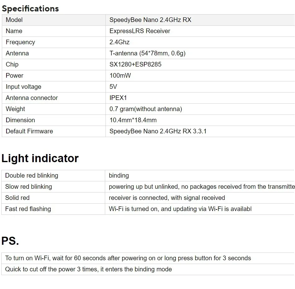 | 크기 | Nano 2.4G ELRS |