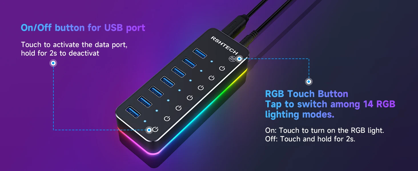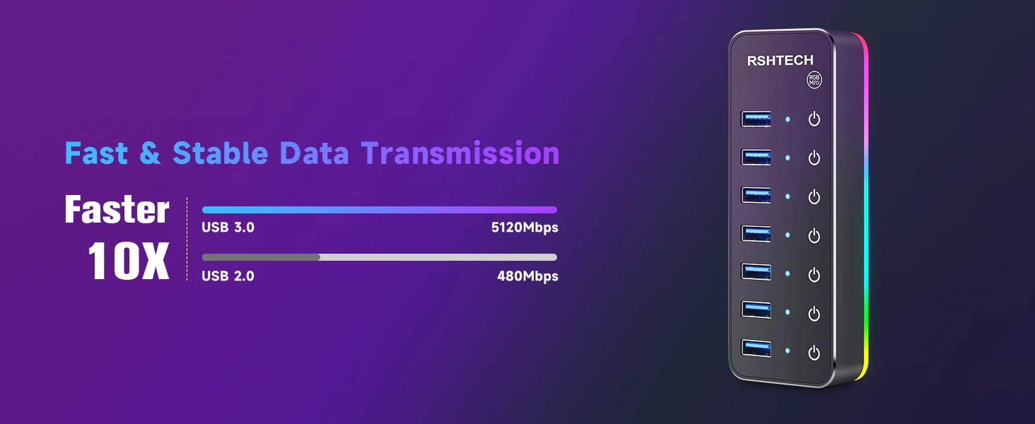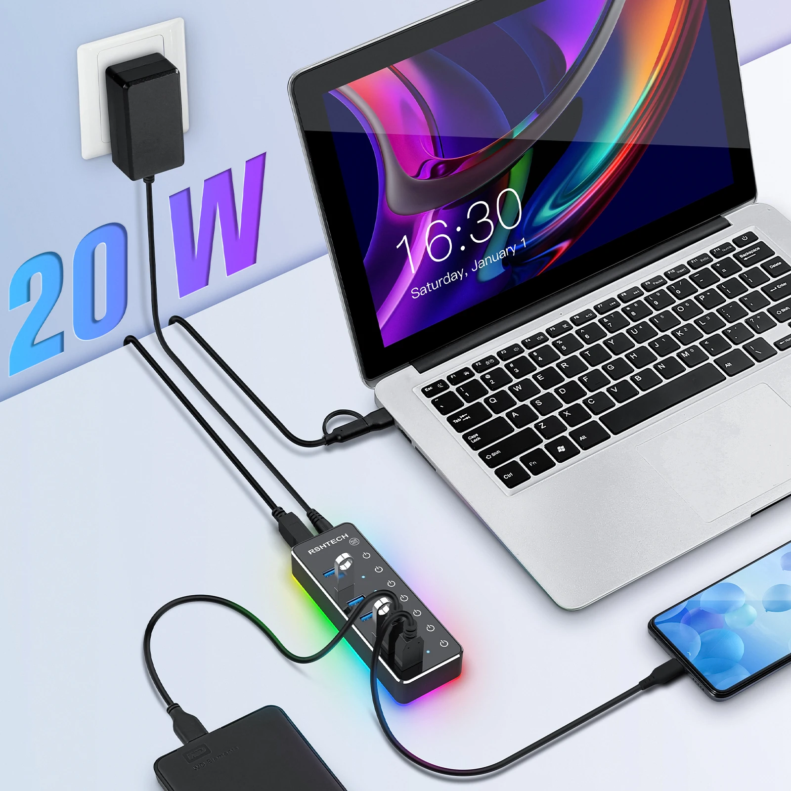 SHTECH RGB 7포트 POWER LOGIC 공급 USB 3.0/USB C 허브.